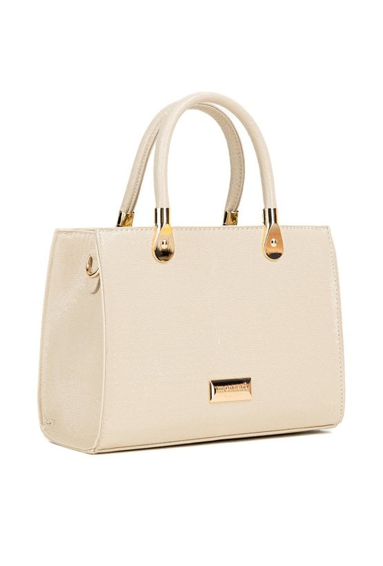 Torba damska o wymiarach: 26 cm x 19 cm x 11 cm. Torba jednokomorowa o jasnej, logowanej podszewce z dodatkowymi kieszonkami w środku i z jedną zapinaną na suwak. Torba została wyposażona w wygodne rączki, a w zestawie znajduje się odpinany, regulowany pasek, umożliwiający noszenie na różne sposoby. Stylowy i funkcjonalny model, idealny na każdą okazję. Torbę należy przechowywać w dołączonym woreczku.