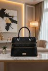 Tekstylna torba damska z kolekcji biurowej. Jednokomorowy model z jasnym, logowanym wnętrzem oraz dodatkowymi kieszonkami na drobiazgi. Torba zawieszona na rączkach, a w zestawie znajduje się regulowany pasek. Dla lepszej ochrony należy przechowywać ją w dołączonym woreczku. Wymiar torby: 40 × 30 × 7 cm sprawi, że doskonale sprawdzi się również jako elegancka torba na laptopa.
