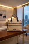 Tekstylna torba damska z kolekcji biurowej. Jednokomorowy model z jasnym, logowanym wnętrzem oraz dodatkowymi kieszonkami na drobiazgi. Torba zawieszona na rączkach, a w zestawie znajduje się regulowany pasek. Dla lepszej ochrony należy przechowywać ją w dołączonym woreczku. Wymiar torby: 40 × 30 × 7 cm sprawi, że doskonale sprawdzi się również jako elegancka torba na laptopa.