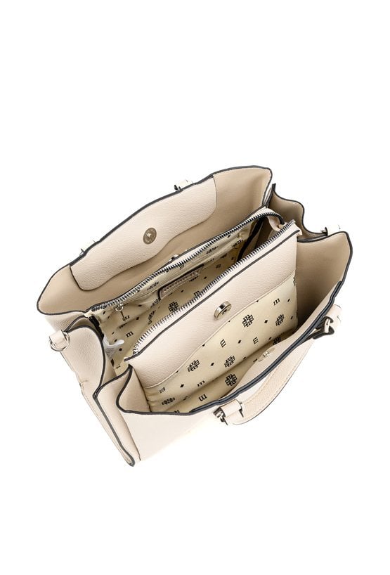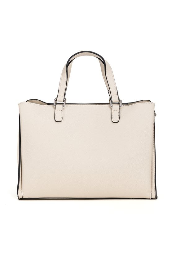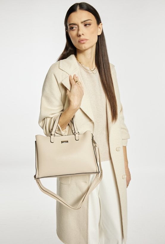 Torba damska o wymiarach 27 × 19,5 × 11 cm to elegancki model, który świetnie sprawdzi się do stylizacji biurowych i na co dzień. Torba jest trzykomorowa, ma jasne, logowane wnętrza oraz dodatkowe kieszonki na drobiazgi, które ułatwiają organizację. Torba ma dwie komory zapinane na napy oraz środkową komorę na suwak. Torba w zestawie ma odpinany, regulowany pasek. Torbę należy przechowywać w dołączonym woreczku.