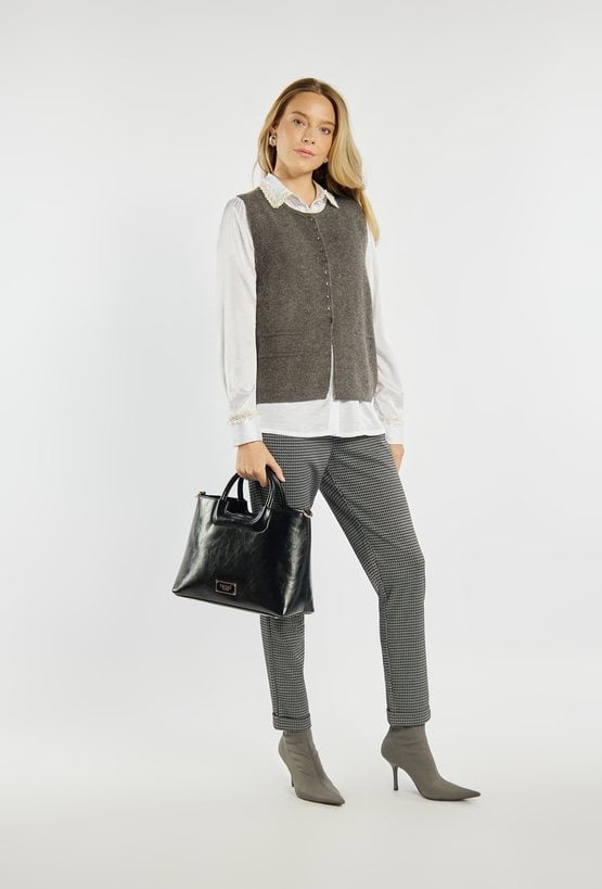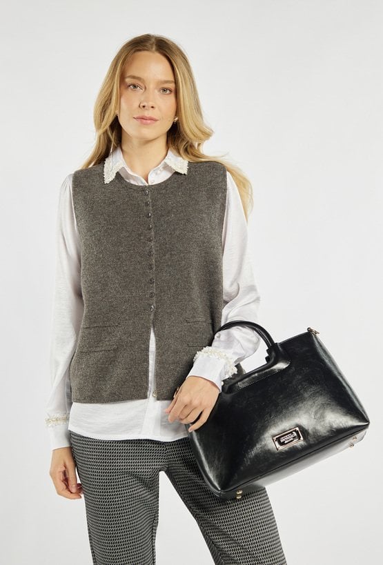 Torba damska o wymiarach 38 × 26 × 14 cm, doskonała na co dzień. Wyposażona w jedną przestronną komorę z jasną, logowaną podszewką oraz praktycznymi kieszonkami na telefon, klucze i drobiazgi. Zapinana na suwak, gwarantuje wygodę i bezpieczeństwo przechowywania. Komfortowe rączki pozwalają nosić ją zarówno w dłoni, jak i na ramieniu. Torbę należy przechowywać w dołączonym woreczku.