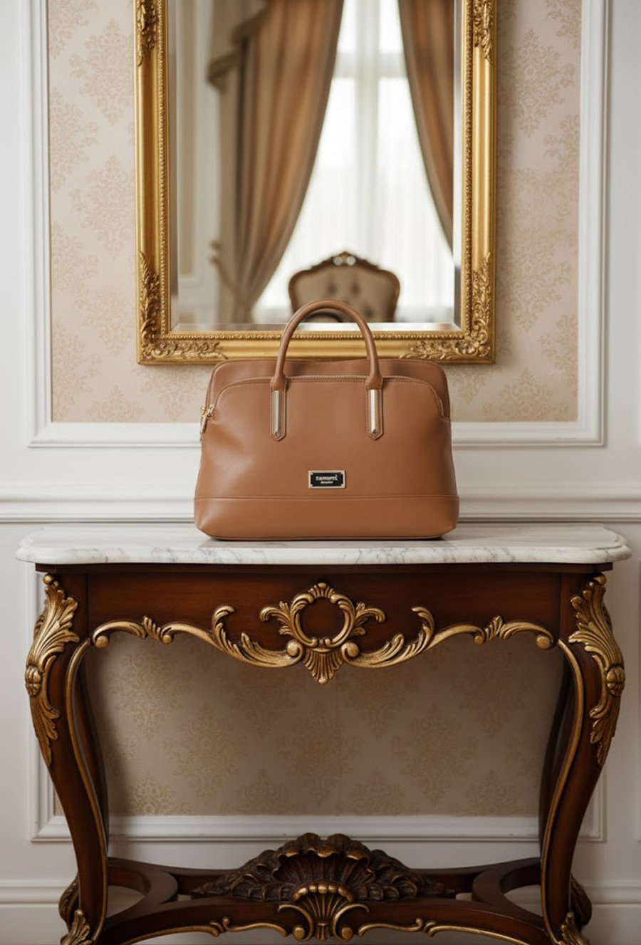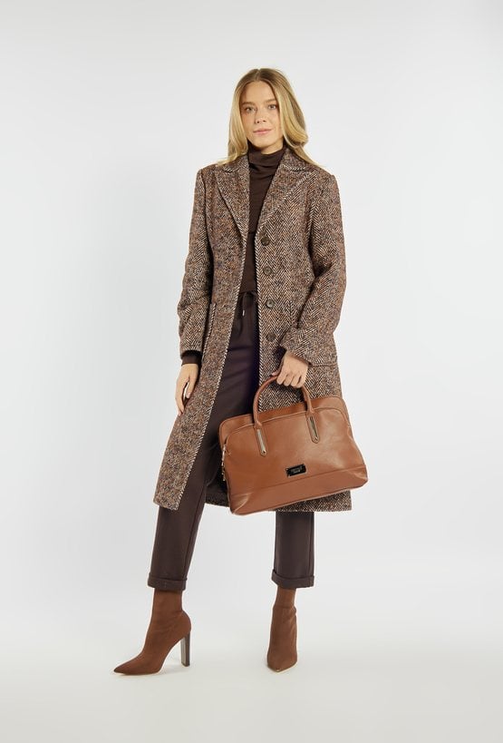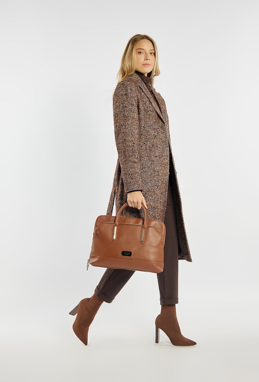Torba damska na laptopa, zawieszona na wygodnych rączkach. Jednokomorowy model z jasną, logowaną podszewką został wyposażony w dodatkowe kieszonki na drobiazgi oraz wydzielone miejsce na laptopa. W zestawie znajduje się również regulowany pasek, który umożliwia noszenie torby na ramieniu. Wymiary: 41 cm x 30 cm 10 cm.
