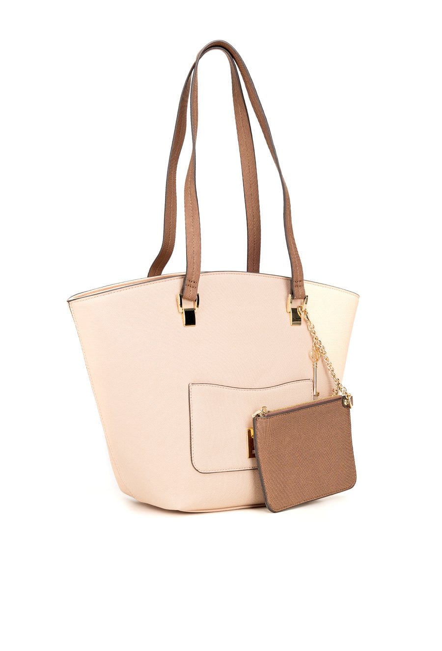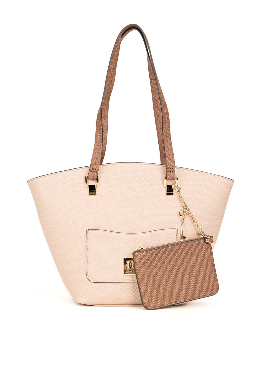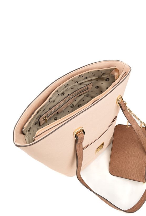 Duża torba damska o wymiarach 39 × 28 × 13 cm to praktyczny wybór na co dzień. Torba jest jednokomorowa, ma jasną, logowaną podszewkę oraz dodatkowe kieszonki na drobiazgi. Torba została zawieszona na wygodnych rączkach, a przy jednej z nich znajduje się przyczepiona mała saszetka. Torbę należy przechowywać w dołączonym woreczku.