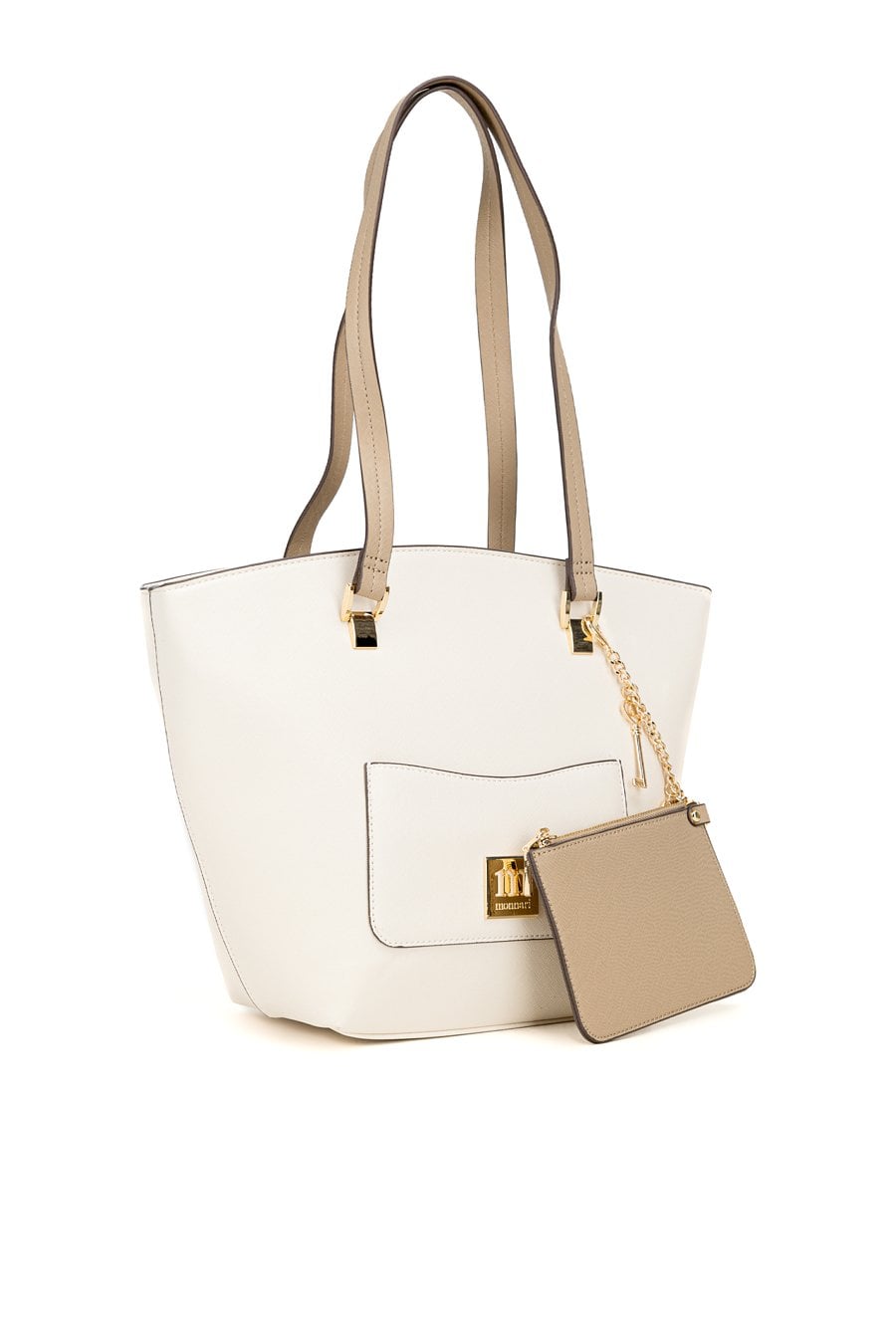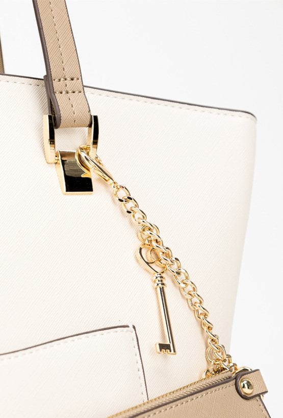 Duża torba damska o wymiarach 39 × 28 × 13 cm to praktyczny wybór na co dzień. Torba jest jednokomorowa, ma jasną, logowaną podszewkę oraz dodatkowe kieszonki na drobiazgi. Torba została zawieszona na wygodnych rączkach, a przy jednej z nich znajduje się przyczepiona mała saszetka. Torbę należy przechowywać w dołączonym woreczku.