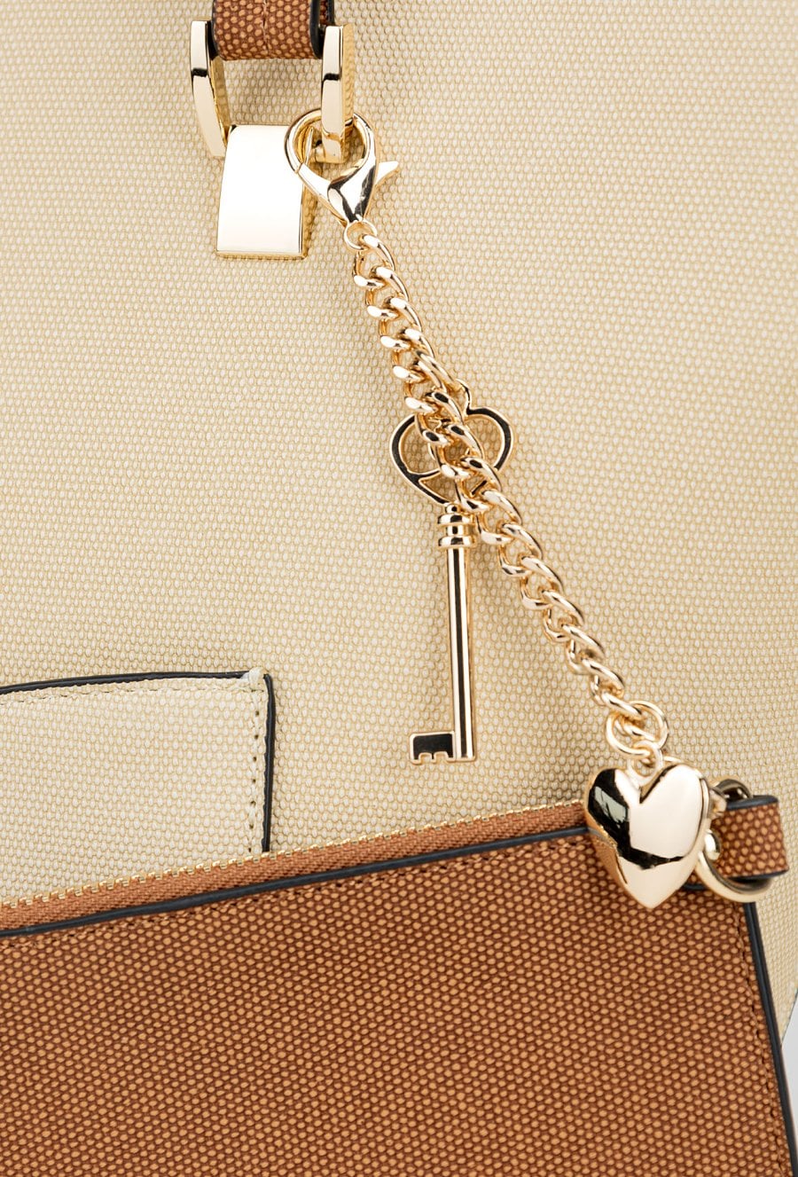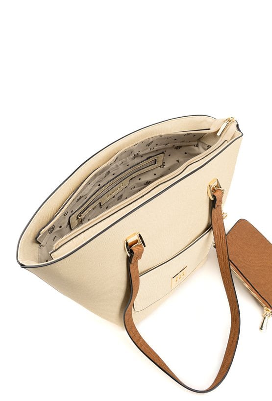 Duża torba damska o wymiarach 39 × 28 × 13 cm to praktyczny wybór na co dzień. Torba jest jednokomorowa, ma jasną, logowaną podszewkę oraz dodatkowe kieszonki na drobiazgi. Torba została zawieszona na wygodnych rączkach, a przy jednej z nich znajduje się przyczepiona mała saszetka. Torbę należy przechowywać w dołączonym woreczku.