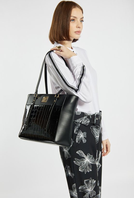 Torba damska we wzór o wymiarach 40 × 27 × 13,5 cm to pojemny i stylowy wybór na co dzień oraz do pracy. Torba jest jednokomorowa i została wykończona jasną, logowaną podszewką, a dodatkowe kieszonki na drobiazgi ułatwiają organizację zawartości. Torba zawieszona na wygodnych rączkach. Torbę należy przechowywać w dołączonym woreczku.