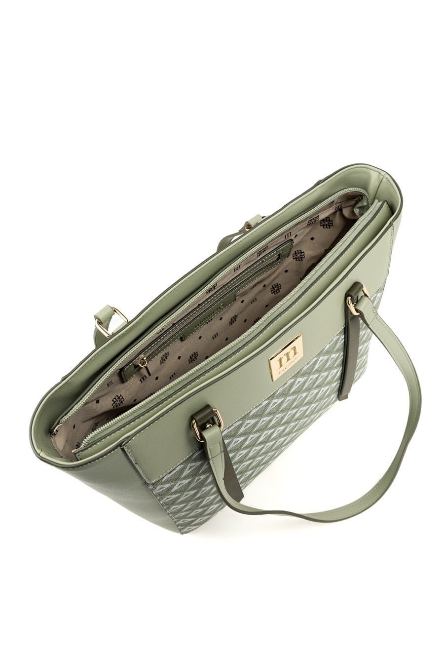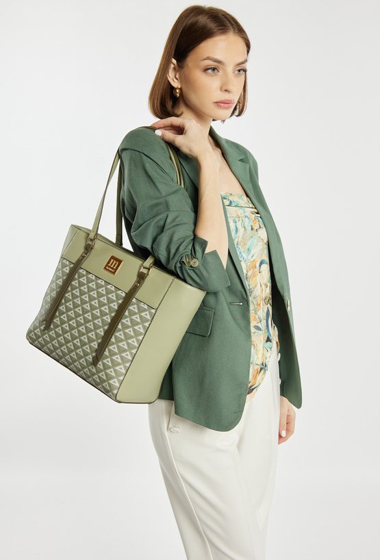 Torba damska we wzór o wymiarach 40 × 27 × 13,5 cm to pojemny i stylowy wybór na co dzień oraz do pracy. Torba jest jednokomorowa i została wykończona jasną, logowaną podszewką, a dodatkowe kieszonki na drobiazgi ułatwiają organizację zawartości. Torba zawieszona na wygodnych rączkach. Torbę należy przechowywać w dołączonym woreczku.