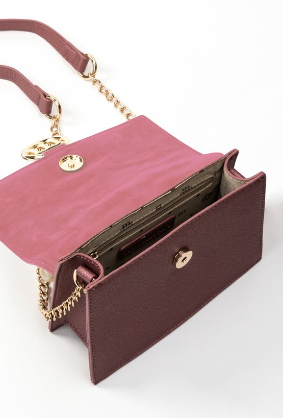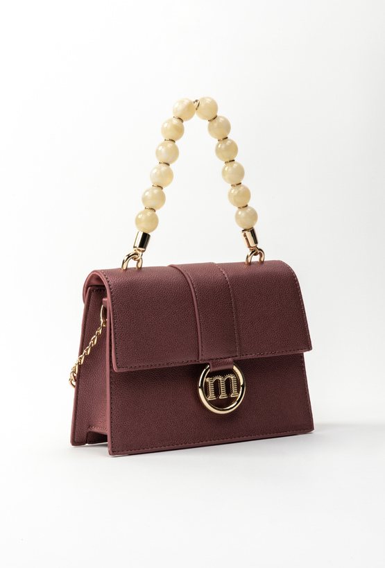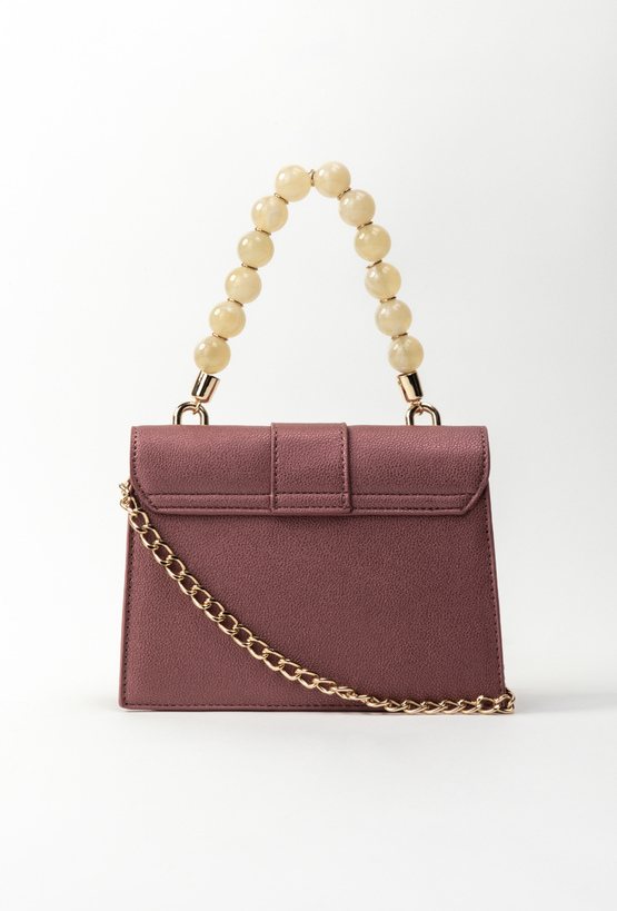 Mały kuferek damski z kolekcji Premium w eleganckim stylu. Kuferek zawieszony na rączce wykonanej z dużych korali oraz pasku z elementem łańcuszka. Kuferek z klapą, jednokomorowy z jasnym wnętrzem oraz kieszonkami na drobiazgi. Torbę należy przechowywać w załączonym woreczku. Wymiary torby: 21cm x 16cm x 7cm