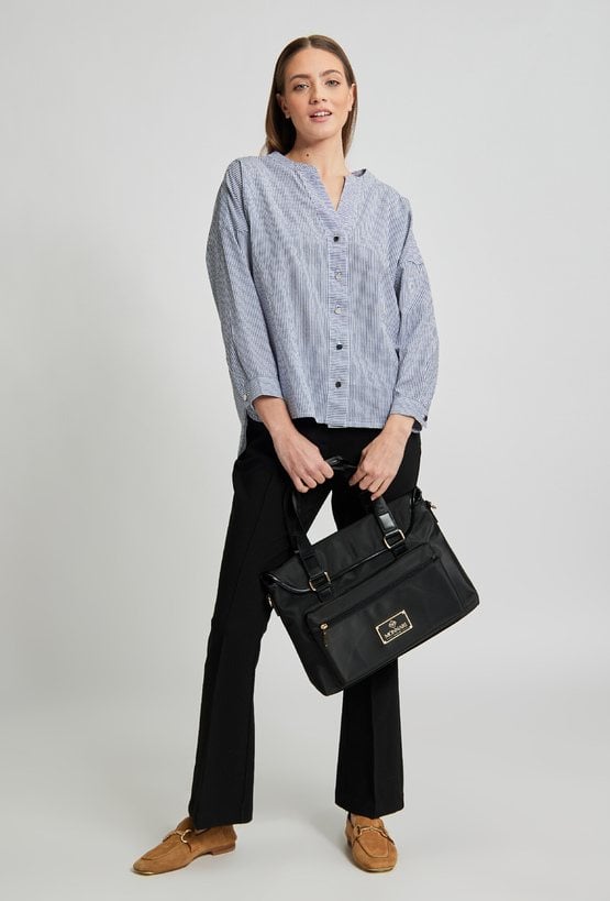Shopper w sportowym stylu z kolekcji Premium. Shopper jednokomorowy o jasnym wnętrzu z dodatkowymi kieszonkami na drobiazgi. Shopper zawieszony na rączkach zapinany a suwak oraz klapę na napy. W zestawie dołączony regulowany pasek. Torba pomieści laptopa o wymiarach 14 cali. Torbę należy przechowywać w dołączonym woreczku. Wymiary Torby: 31 cm x 40 cm x 12 cm