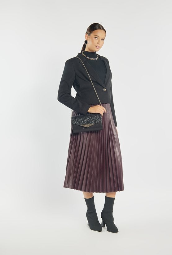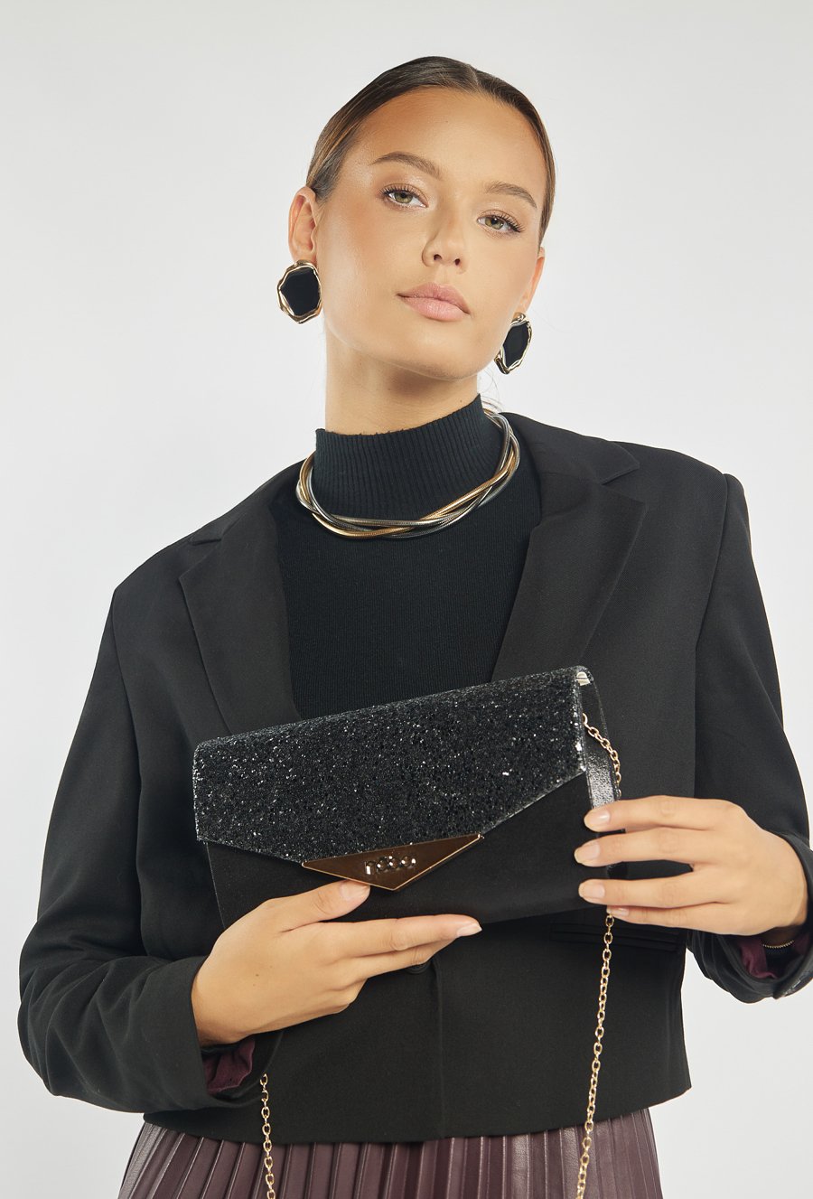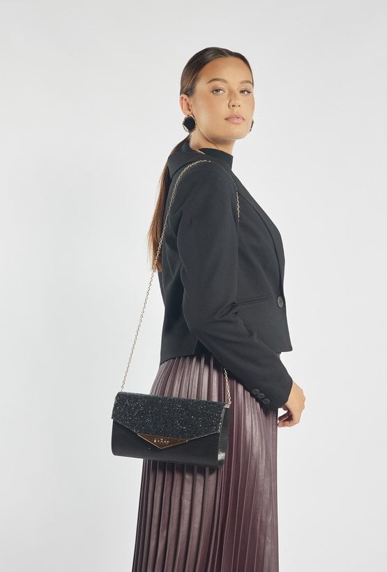 Stylowa i klasyczna kopertówka to idealny wybór na wieczorne wyjścia, przyjęcia i uroczystości. Torebka posiada jednokomorowe wnętrze z praktycznymi kieszonkami, które ułatwiają przechowywanie najważniejszych drobiazgów. Model zamykany na elegancką klapę prezentuje się wyjątkowo szykownie i subtelnie podkreśla wieczorowy charakter stylizacji. Niewielki rozmiar czyni ją poręczną, a jednocześnie wystarczająco pojemną, by pomieścić to, co niezbędne. Torbę należy przechowywać w dołączonym woreczku. Wymiary: 25 cm x 14 cm x 6,5 cm.