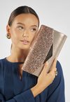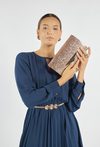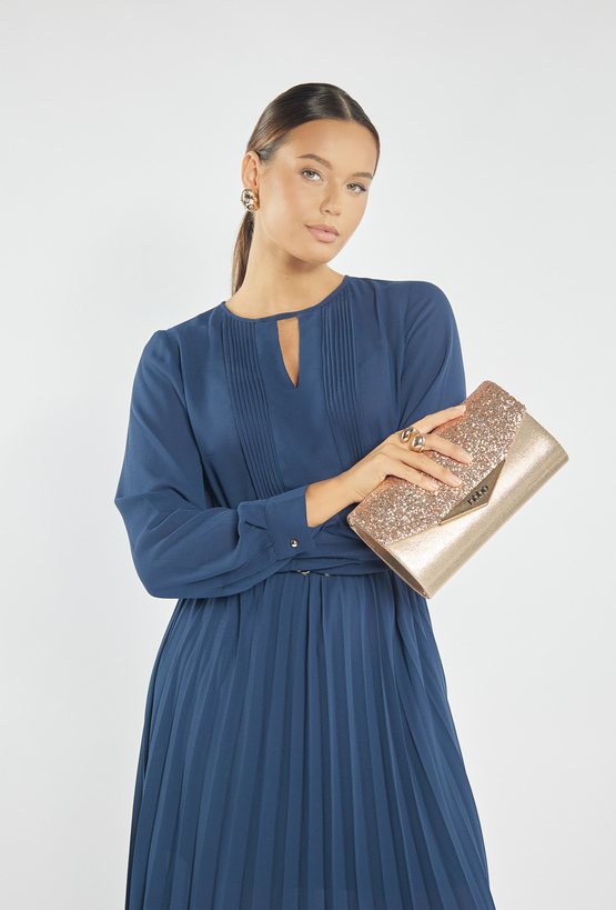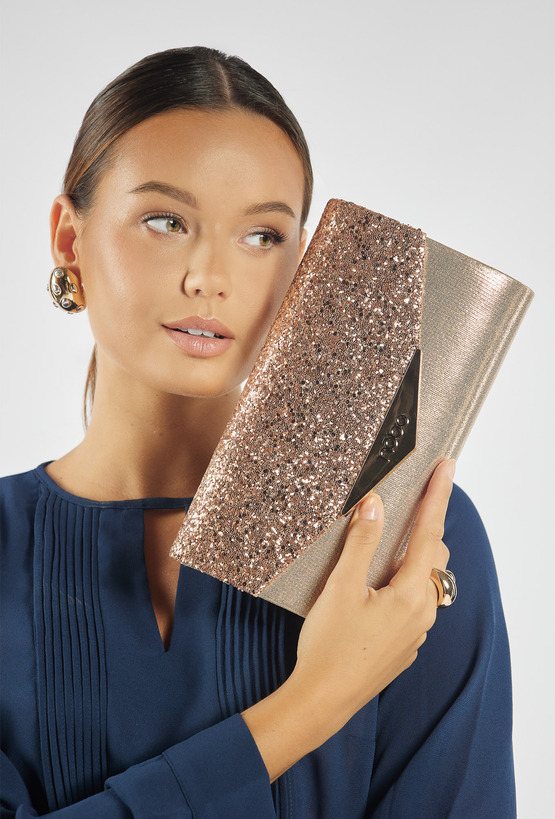 Stylowa i klasyczna kopertówka to idealny wybór na wieczorne wyjścia, przyjęcia i uroczystości. Torebka posiada jednokomorowe wnętrze z praktycznymi kieszonkami, które ułatwiają przechowywanie najważniejszych drobiazgów. Model zamykany na elegancką klapę prezentuje się wyjątkowo szykownie i subtelnie podkreśla wieczorowy charakter stylizacji. Niewielki rozmiar czyni ją poręczną, a jednocześnie wystarczająco pojemną, by pomieścić to, co niezbędne. Torbę należy przechowywać w dołączonym woreczku. Wymiary: 25 cm x 14 cm x 6,5 cm.