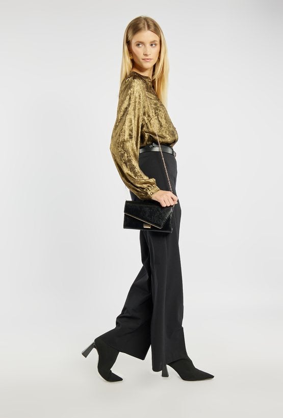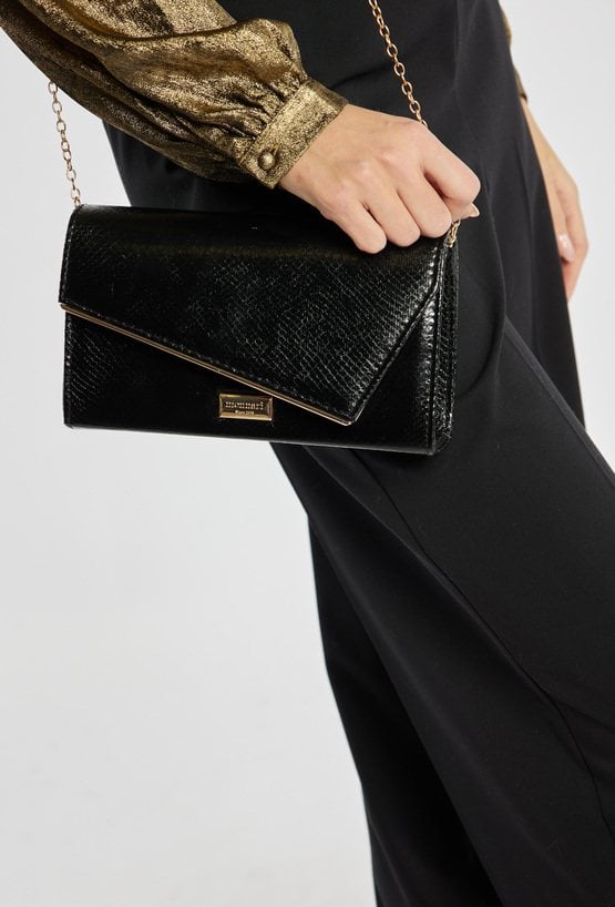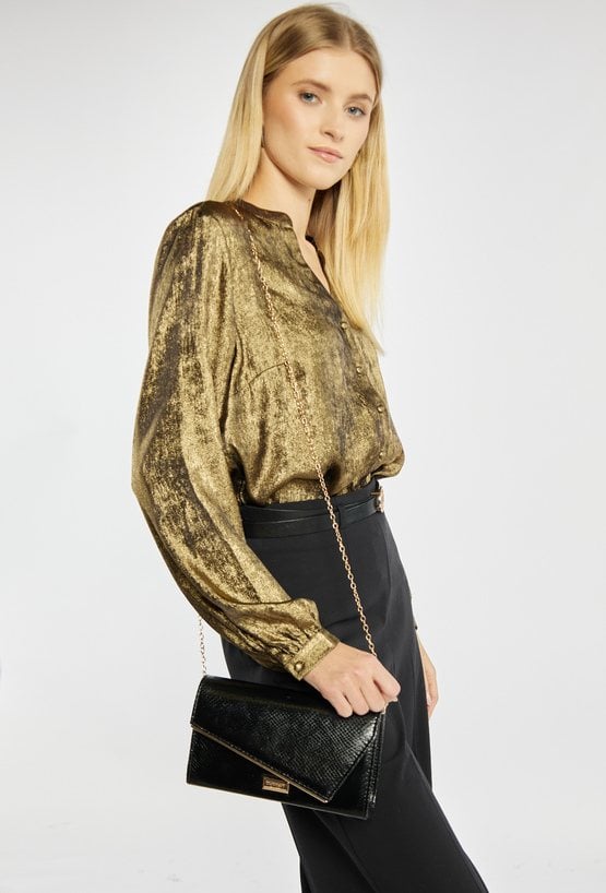 Torebka damska o eleganckim fasonie i delikatnym wzorze. Model jednokomorowy, z jasną, logowaną podszewką oraz dodatkową kieszonką wewnątrz. Torba do ręki, a w zestawie znajduje się pasek z łańcuszka, który pozwala nosić ją również na ramieniu. Torebkę należy przechowywać w dołączonym woreczku. Wymiary: 22 cm x 13 cm x 5,5 cm.