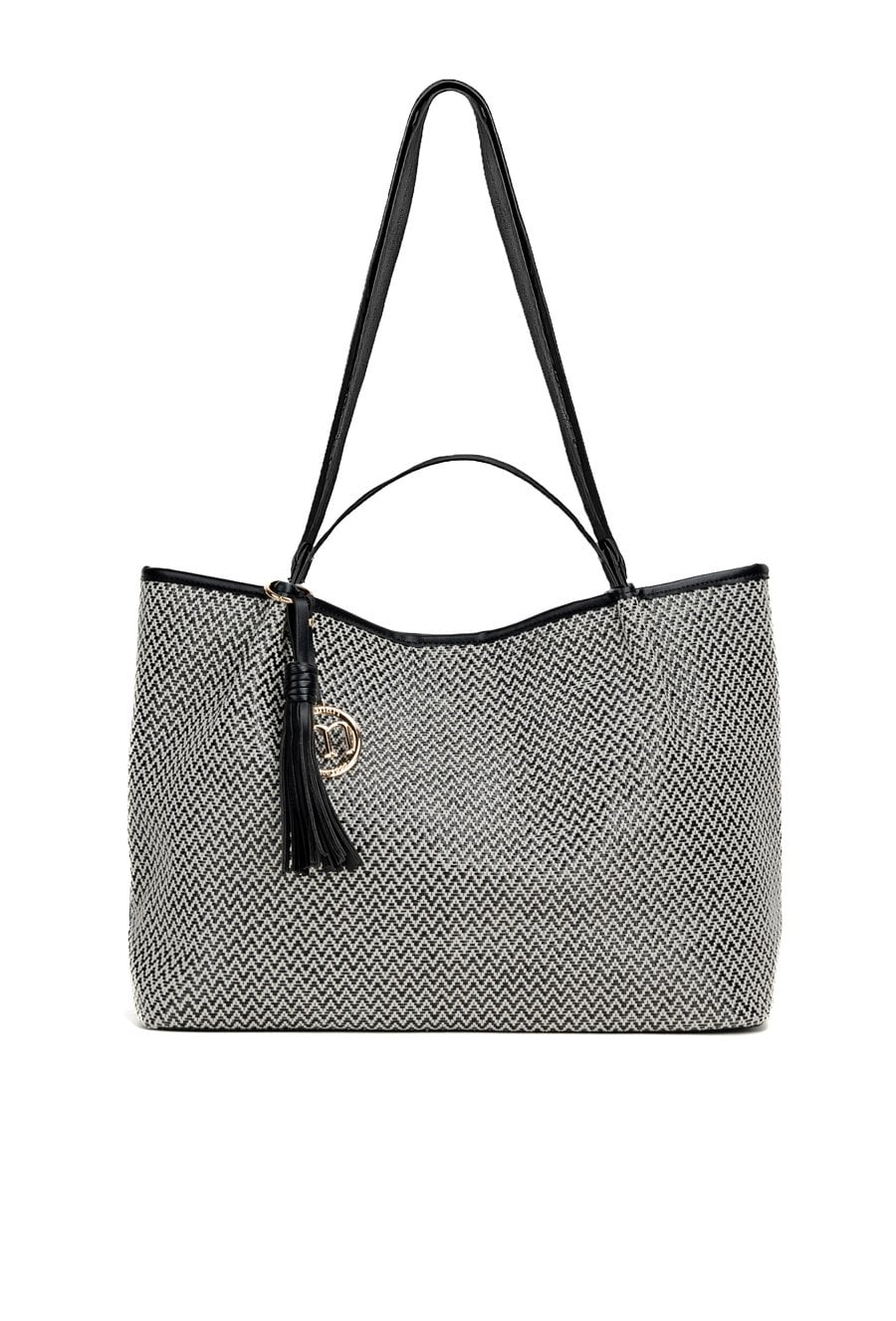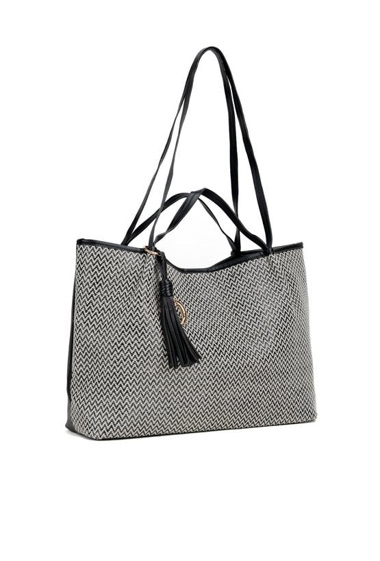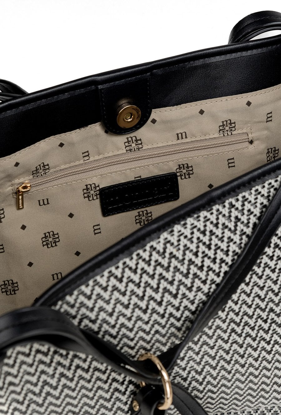 Torba damska typu shopper z plecionki to stylowy wybór na co dzień. Torba jest jednokomorowa, ma jasną, logowaną podszewkę oraz dodatkowe kieszonki na drobiazgi, a także rączki ozdobione frędzlami i logo marki Monnari; model zapinany jest na napę. Torbę należy przechowywać w dołączonym woreczku. Wymiary: 51 cm x 28 cm x 14 cm.