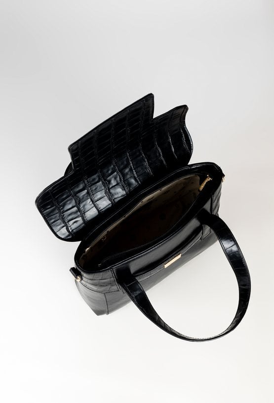 Kompaktowa torebka damska o wymiarach 28,5 × 22 × 11 cm, idealna do codziennych i eleganckich stylizacji. Model jednokomorowy, zapinany na suwak oraz klapę, zapewnia bezpieczeństwo przechowywanych rzeczy. Wnętrze wykończone jasną podszewką z logo, ułatwia organizację i dodaje całości stylowego charakteru. Torebka zawieszona na wygodnych rączkach, a w zestawie znajduje się regulowany pasek, który umożliwia noszenie jej również na ramieniu. Torbę należy przechowywać w załączonym woreczku.