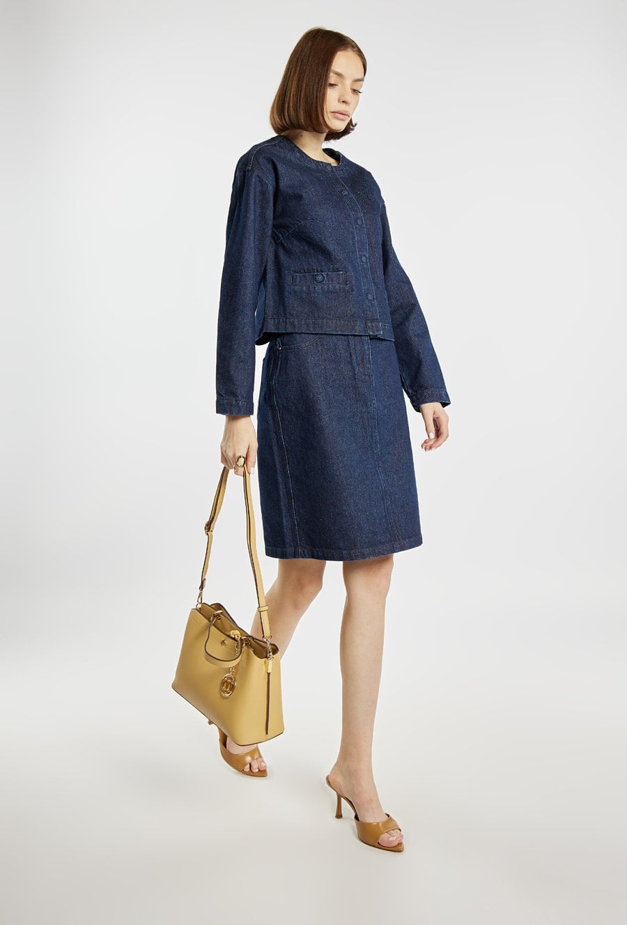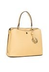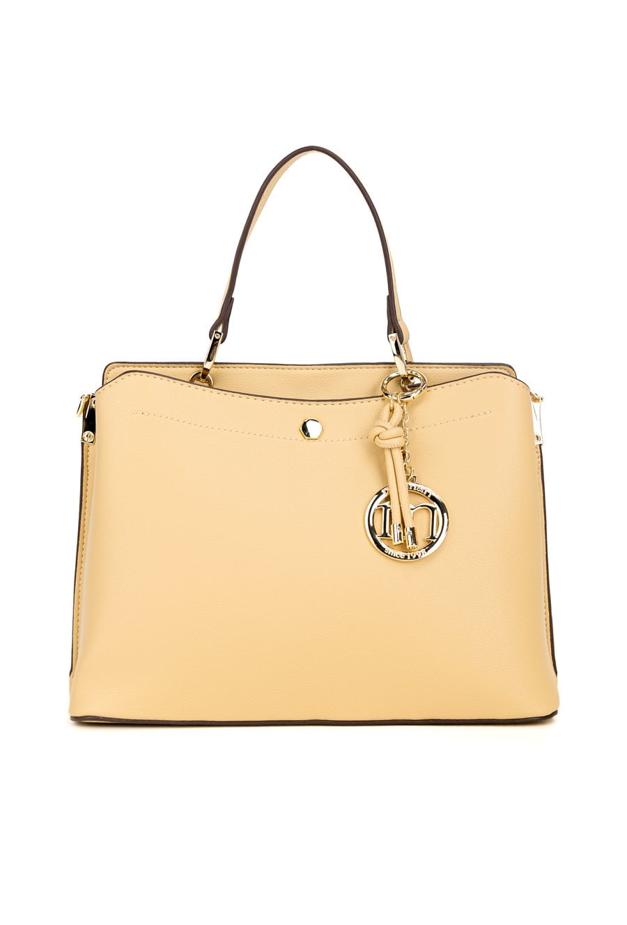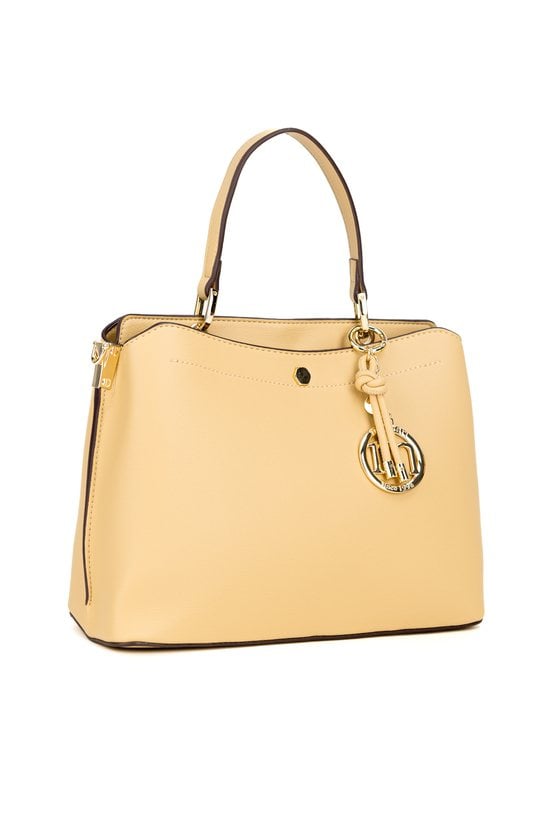 Kuferek damski z elegancką zawieszką z logo marki Monnari. Torba jest dwukomorowa, zapinana na praktyczne napy, a w środku posiada jasne, logowane podszewki. Torba została zawieszona na wygodnej rączce do noszenia w dłoni, a w zestawie znajduje się regulowany pasek z możliwością odpięcia. Torbę należy przechowywać w dołączonym woreczku. Wymiary: 27 cm x 19,5 cm x 11 cm.