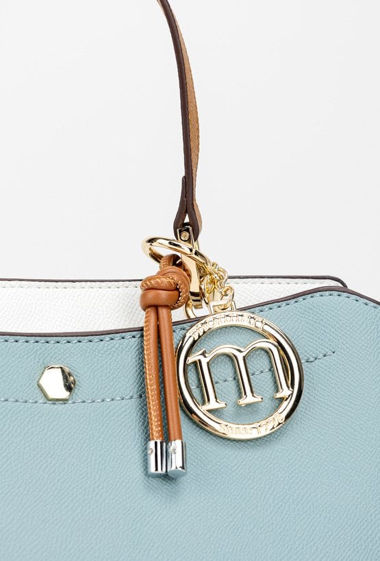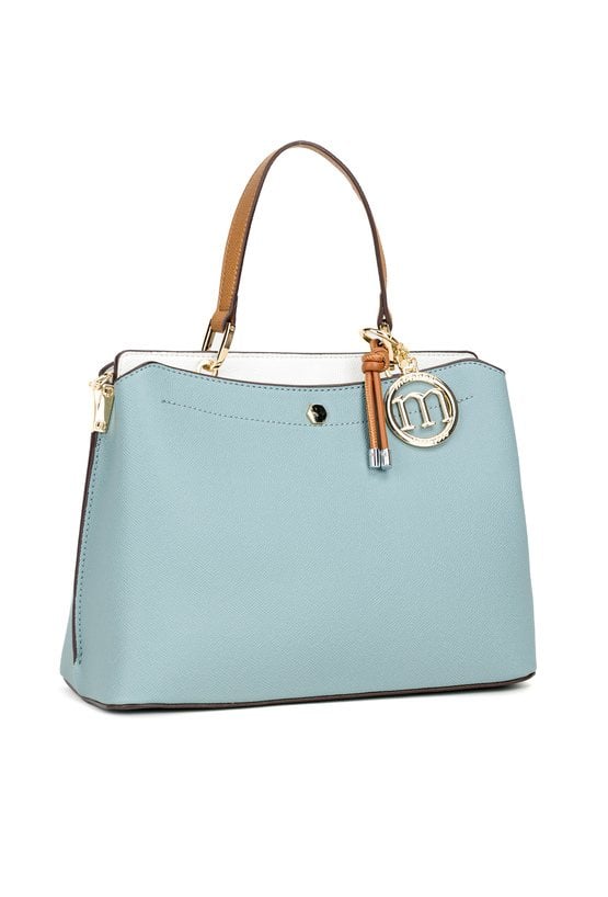 Kuferek damski z elegancką zawieszką z logo marki Monnari. Torba jest dwukomorowa, zapinana na praktyczne napy, a w środku posiada jasne, logowane podszewki. Torba została zawieszona na wygodnej rączce do noszenia w dłoni, a w zestawie znajduje się regulowany pasek z możliwością odpięcia. Torbę należy przechowywać w dołączonym woreczku. Wymiary: 27 cm x 19,5 cm x 11 cm.