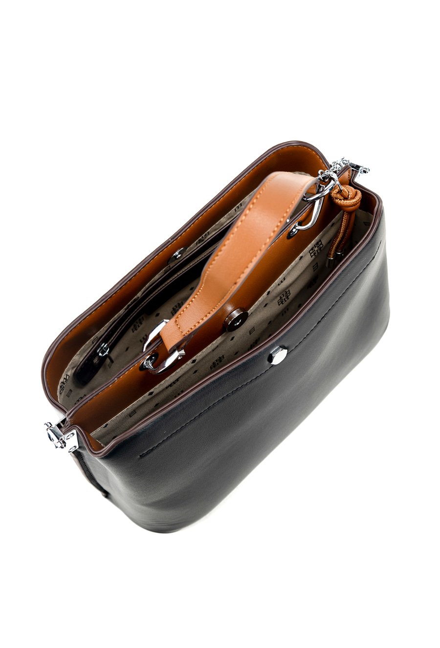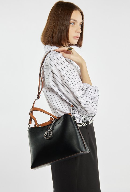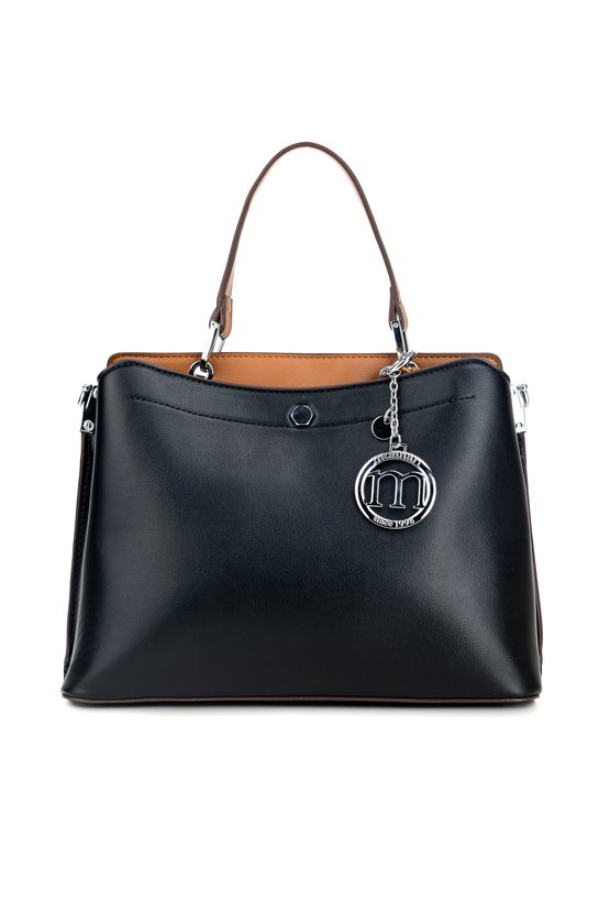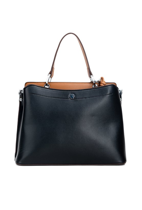 Kuferek damski z elegancką zawieszką z logo marki Monnari. Torba jest dwukomorowa, zapinana na praktyczne napy, a w środku posiada jasne, logowane podszewki. Torba została zawieszona na wygodnej rączce do noszenia w dłoni, a w zestawie znajduje się regulowany pasek z możliwością odpięcia. Torbę należy przechowywać w dołączonym woreczku. Wymiary: 27 cm x 19,5 cm x 11 cm.