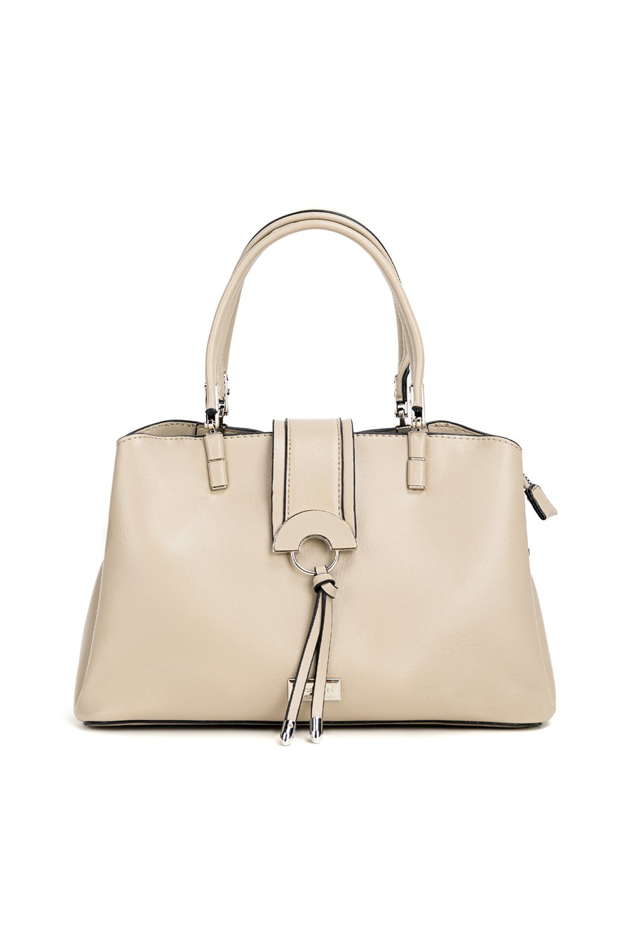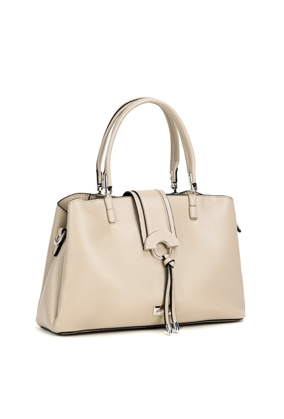 Kuferek damski trzykomorowy o wymiarach 27 × 18 × 10 cm to stylowy i praktyczny model na co dzień. Torba ma jasne, logowane wnętrza oraz dodatkowe kieszonki na drobiazgi, które ułatwiają organizację. Torba zawieszona na rączkach zapinana jest na pasek z napą, a ozdobne frędzle dodają jej charakteru; w zestawie znajduje się także regulowany pasek. Torbę należy przechowywać w dołączonym woreczku.
