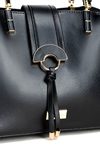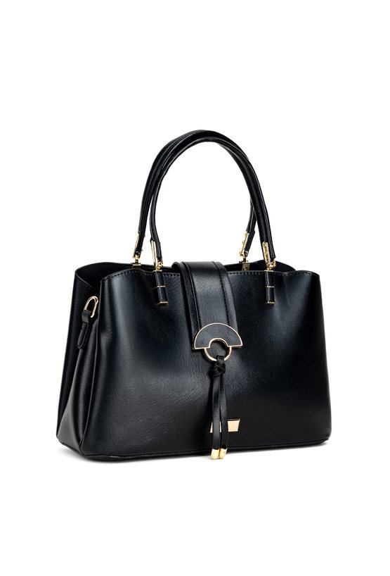 Kuferek damski trzykomorowy o wymiarach 27 × 18 × 10 cm to stylowy i praktyczny model na co dzień. Torba ma jasne, logowane wnętrza oraz dodatkowe kieszonki na drobiazgi, które ułatwiają organizację. Torba zawieszona na rączkach zapinana jest na pasek z napą, a ozdobne frędzle dodają jej charakteru; w zestawie znajduje się także regulowany pasek. Torbę należy przechowywać w dołączonym woreczku.