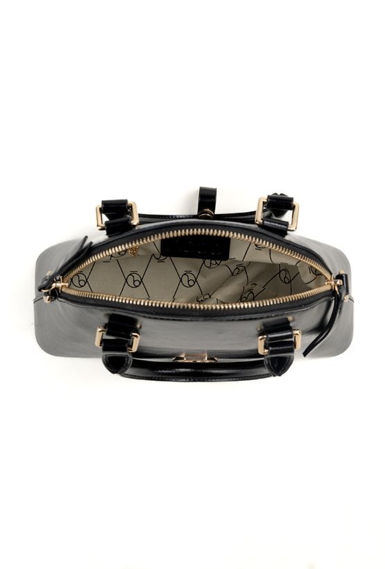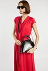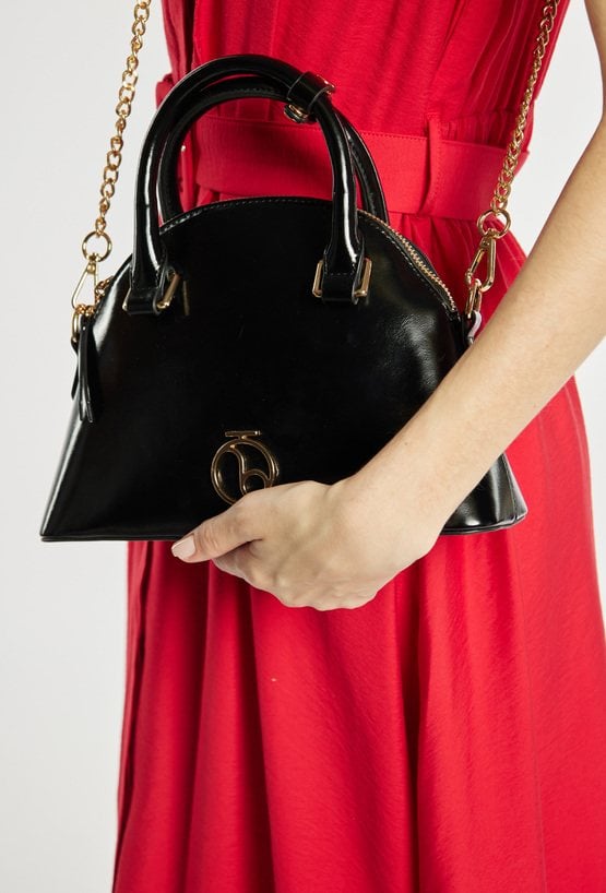 Kuferek damski z eleganckim logo marki NOBO. Jednokomorowe wnętrze z jasną, logowaną podszewką wyposażono w dodatkowe kieszonki na drobiazgi. Torebka zawieszona na małych rączkach, a w zestawie znajduje się regulowany pasek z ozdobnym elementem łańcuszka. Torbę należy przechowywać w dołączonym woreczku. Wymiary: 24 cm x 18,5 cm x 8 cm.