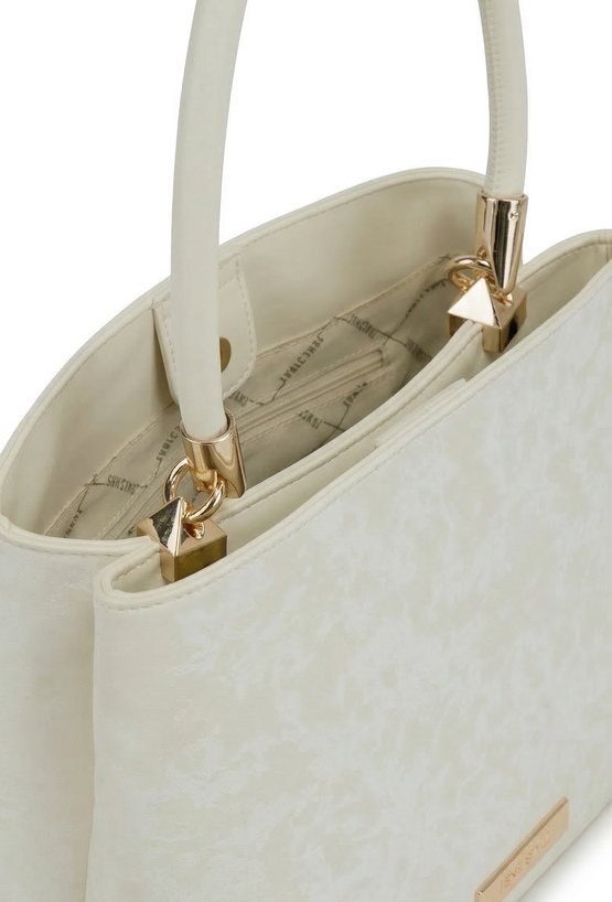 Kuferek damski o wymiarach 27 × 19 × 13 cm. Dwukomorowy model z jasną, logowaną podszewką oraz dodatkowymi kieszonkami na drobiazgi. Kuferek zawieszony na rączce, w zestawie regulowany, odpinany pasek umożliwiający noszenie na ramieniu. Model wyróżnia się ciekawym wzorem. Torbę należy przechowywać w dołączonym woreczku.