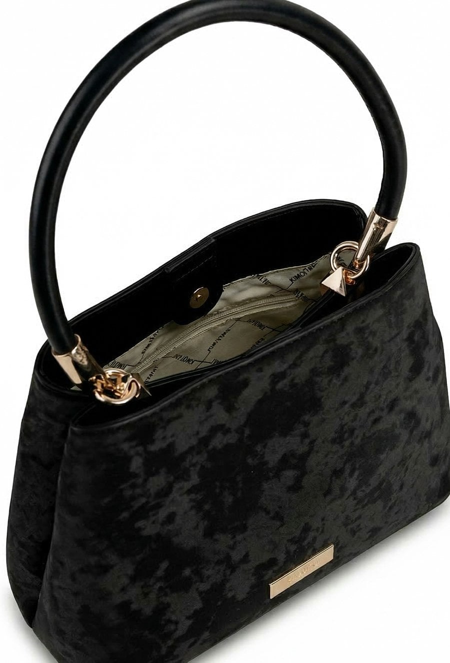 Kuferek damski o wymiarach 27 × 19 × 13 cm. Dwukomorowy model z jasną, logowaną podszewką oraz dodatkowymi kieszonkami na drobiazgi. Kuferek zawieszony na rączce, w zestawie regulowany, odpinany pasek umożliwiający noszenie na ramieniu. Model wyróżnia się ciekawym wzorem. Torbę należy przechowywać w dołączonym woreczku.