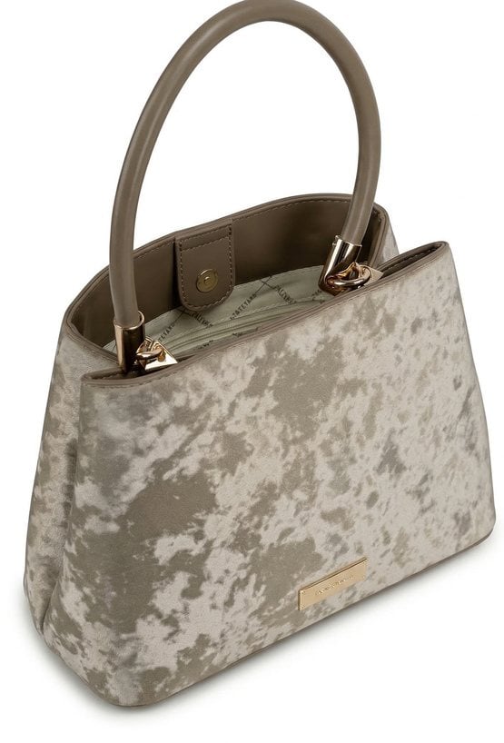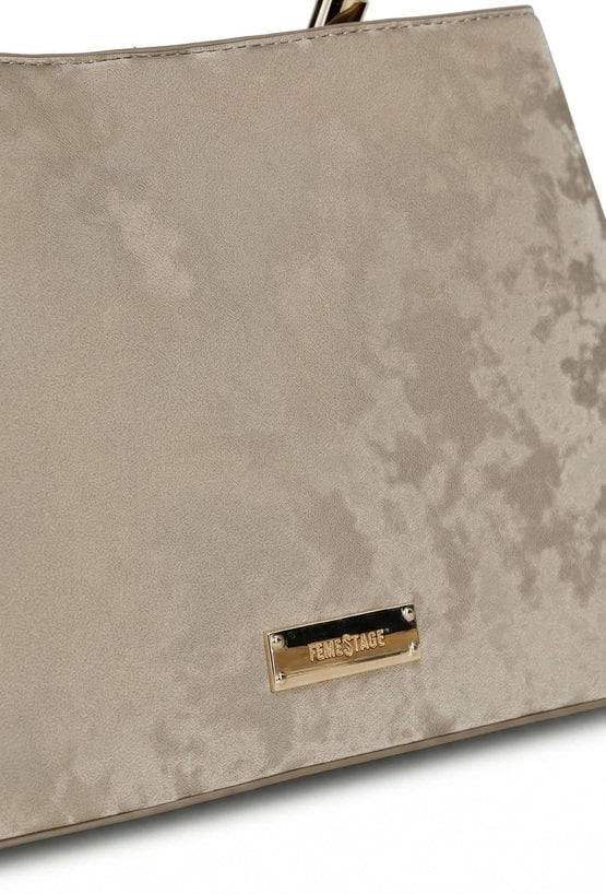 Kuferek damski o wymiarach 27 × 19 × 13 cm. Dwukomorowy model z jasną, logowaną podszewką oraz dodatkowymi kieszonkami na drobiazgi. Kuferek zawieszony na rączce, w zestawie regulowany, odpinany pasek umożliwiający noszenie na ramieniu. Model wyróżnia się ciekawym wzorem. Torbę należy przechowywać w dołączonym woreczku.