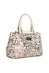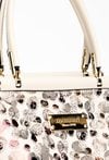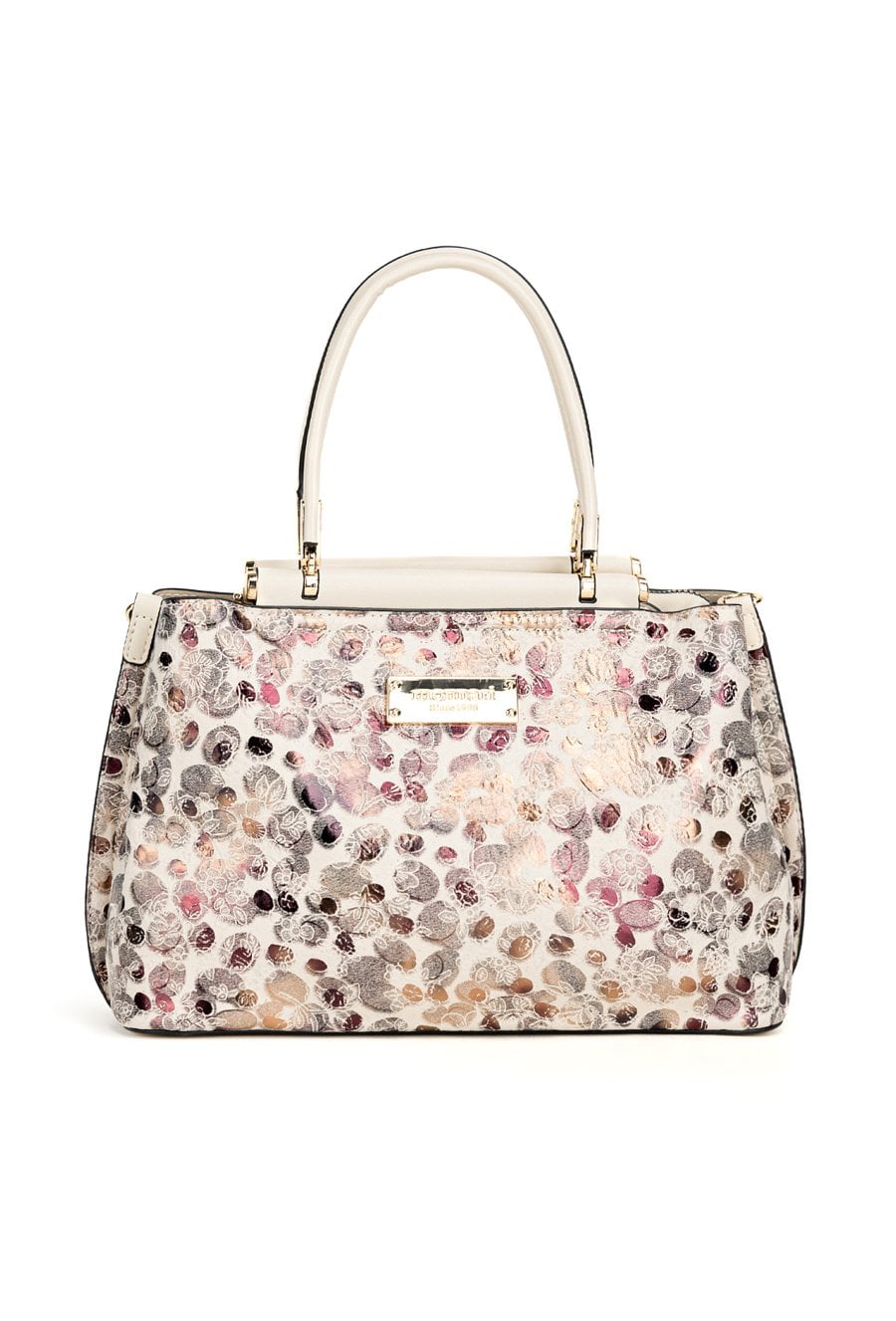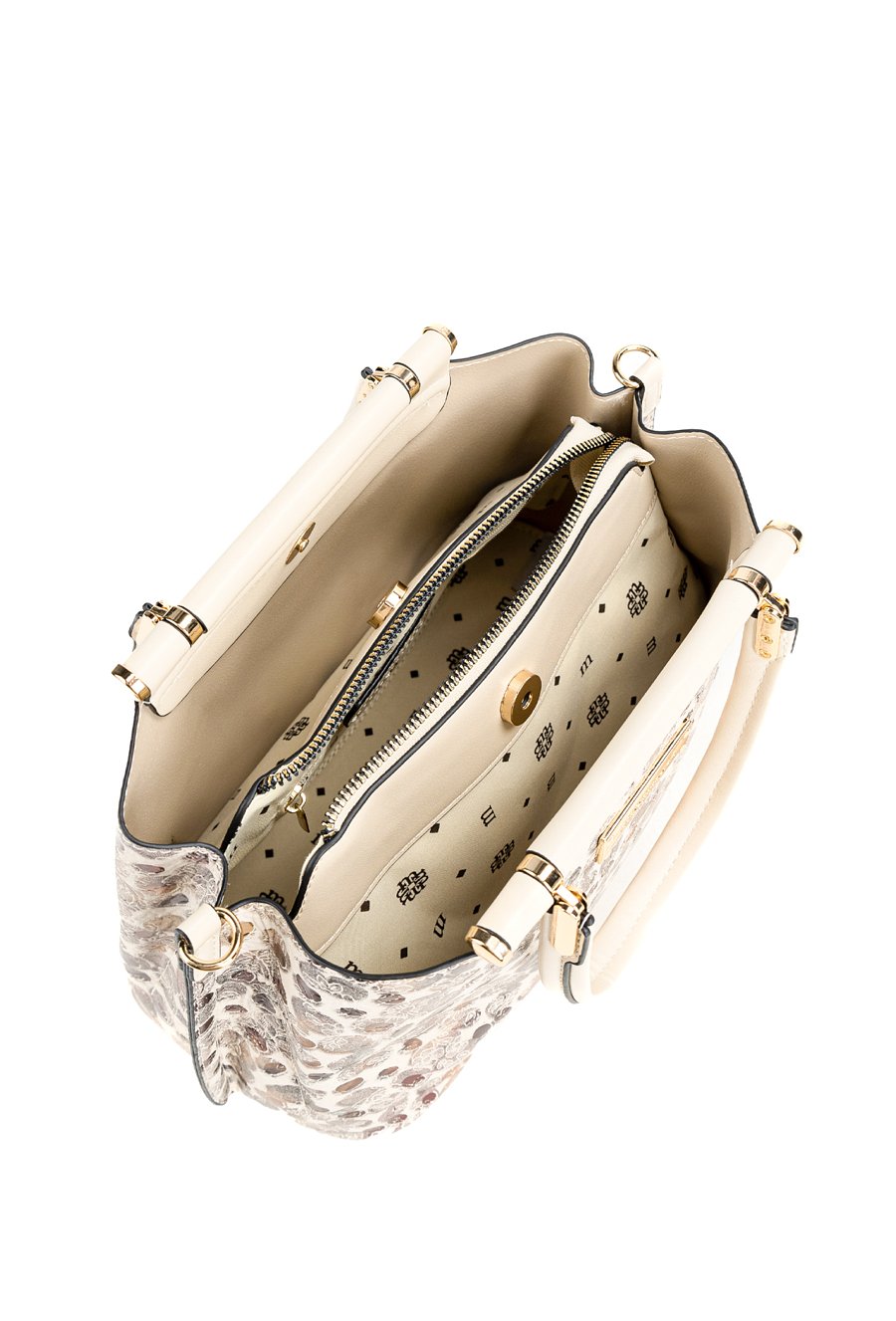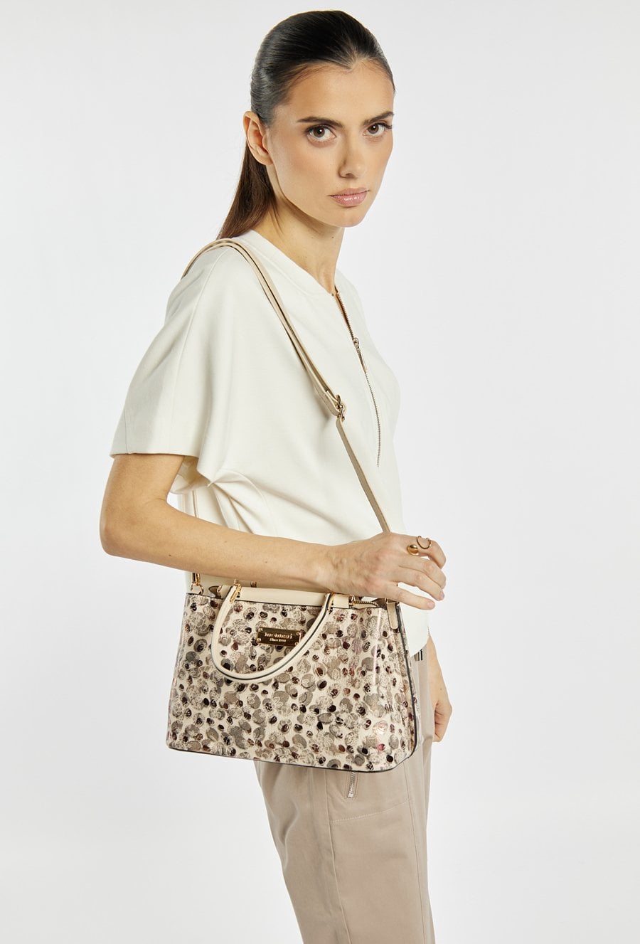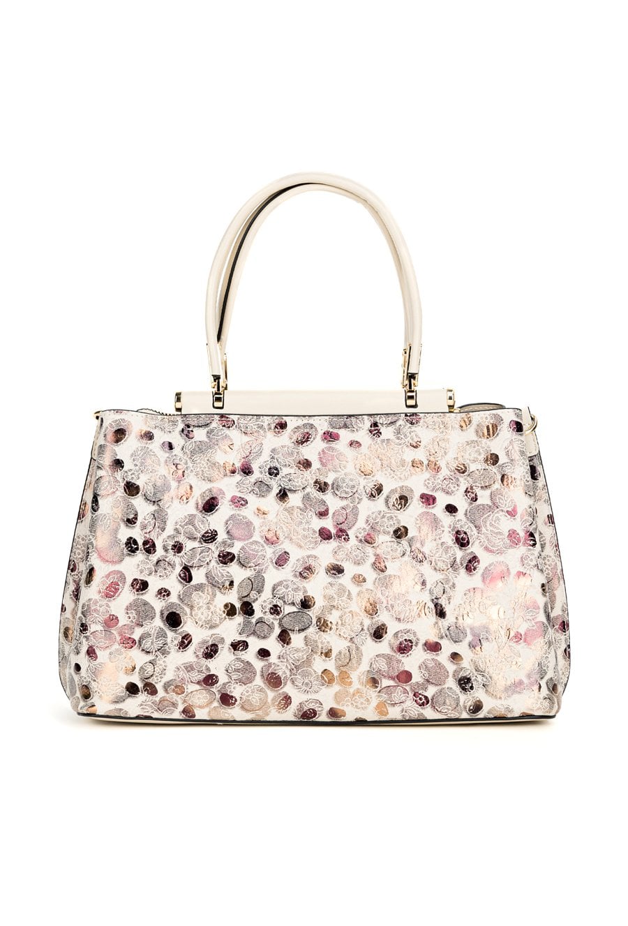 Kuferek damski z połyskującym wzorem o wymiarach: 27 cm x 19,5 cm x 14 cm. Torba jest trzykomorowa, ma jasne, logowane wnętrza oraz dodatkowe kieszonki na drobiazgi, które ułatwiają organizację. Torba ma dwie komory zapinane na napy oraz środkową komorę na suwak, co zapewnia wygodę i bezpieczne przechowywanie rzeczy. Torba zawieszona na rączkach, w zestawie ma regulowany pasek. Torbę należy przechowywać w dołączonym woreczku.