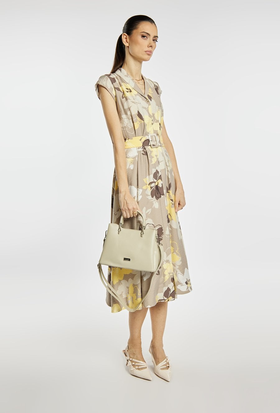 Mała torebka damska z kolekcji biurowej to elegancki i praktyczny model na co dzień. Torba jest trzykomorowa, ma jasną, logowaną podszewkę- środkowa komora zapinana na suwak, a dwie pozostałe na napy, co ułatwia organizację. Torba zawieszona na krótkiej rączce, w zestawie ma regulowany pasek. Należy przechowywać w dołączonym woreczku. 26 cm x 18,5 cm x 11,5 m.