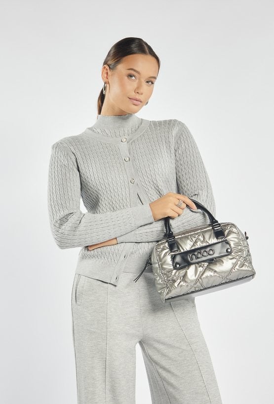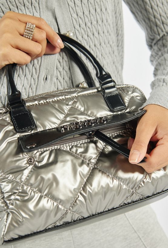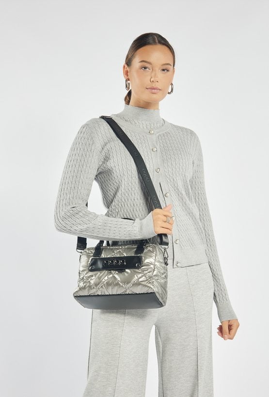 Nowoczesny kuferek z pikowaniem, to stylowy dodatek idealny na co dzień. Jednokomorowa konstrukcja została wykończona jasną, logowaną podszewką oraz wyposażona w praktyczne kieszonki, które ułatwiają organizację drobiazgów. Model zapinany jest na suwak i zawieszony rączkach oraz na efektownym, wzorzystym pasku, który dodaje charakteru. Torbę można nosić także w dłoni- dzięki wygodnym rączkom, które zapewniają swobodę noszenia w różnych stylizacjach. Torbę należy przechowywać w dołączonym woreczku. Wymiary: 27 cm x 19,5 cm x 10 cm.