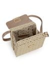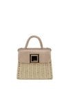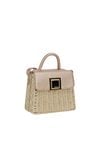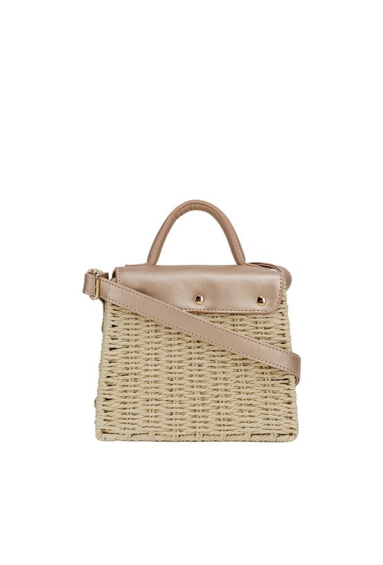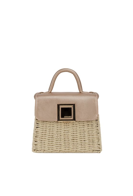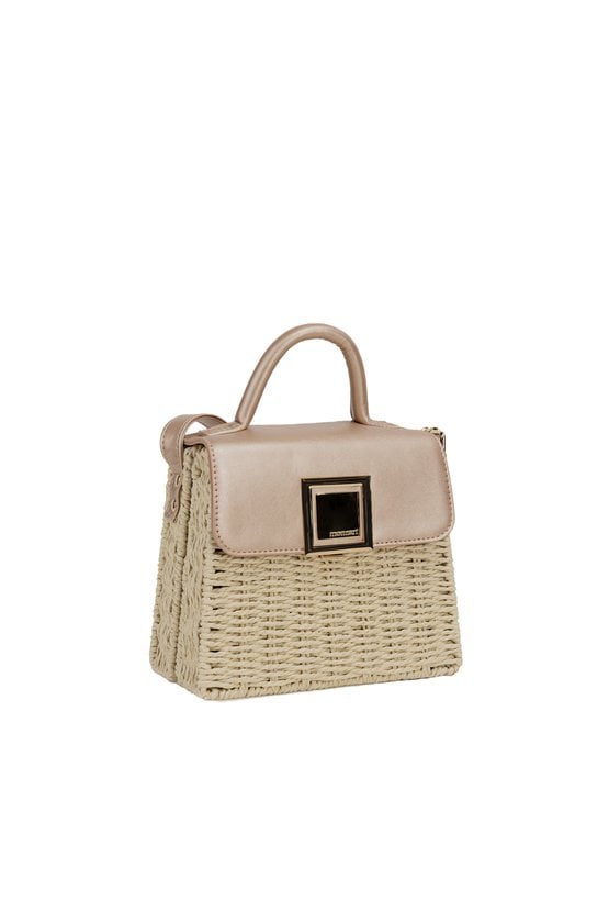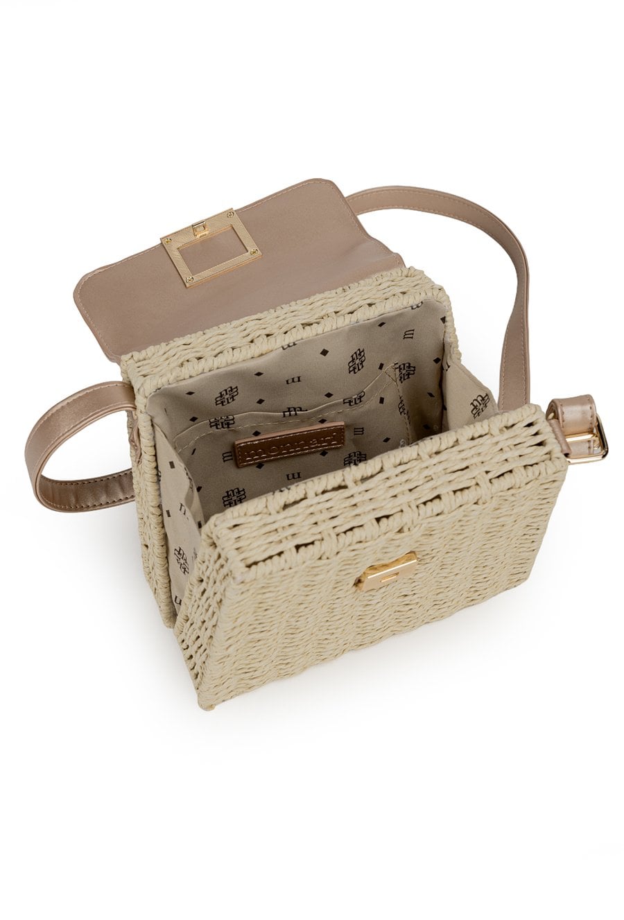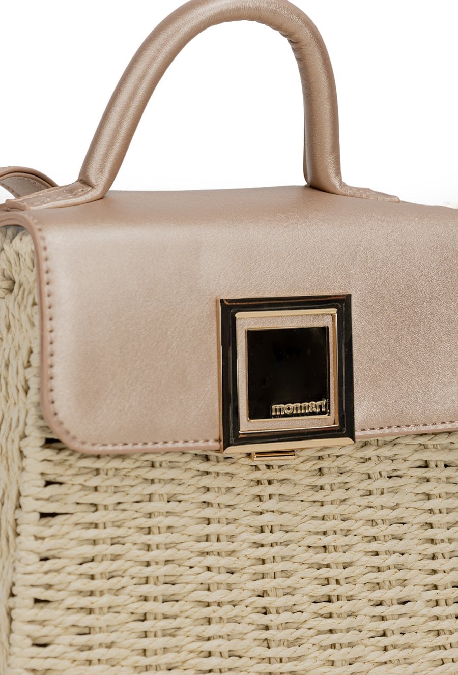 Pleciona torebka damska z klapą. Jednokomorowy model z jasną, logowaną podszewką oraz dodatkową kieszonką w środku. Torebka zawieszona na rączce oraz regulowanym pasku. Model świetnie dopełni letnie stylizacje. Torbę należy przechowywać w dołączonym woreczku. Wymiary: 18,5 cm x 16 cm x 7,5 cm.
