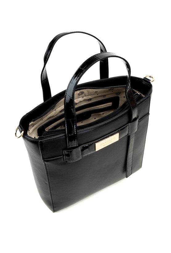 Torba damska o wymiarach 27 × 27,5 × 9,5 cm to praktyczny wybór na co dzień. Torba jest jednokomorowa i ma jasną, logowaną podszewkę, a dodatkowe kieszonki pomagają uporządkować drobiazgi, takie jak telefon, klucze czy kosmetyki. Torba została wyposażona w wygodne rączki do noszenia w dłoni lub na przedramieniu, a w zestawie znajduje się regulowany pasek z możliwością odpięcia.