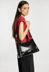 Torba damska o wymiarach 29 × 20 × 12 cm to praktyczny i elegancki model na co dzień. Torba jest jednokomorowa z trzema przegródkami (jedna zapinana na suwak oraz dwie na napy) a dodatkowe kieszonki wewnątrz idealnie sprawdzają się na drobiazgi. Torba zawieszona na rączkach, w zestawie ma pasek z możliwością regulacji, co pozwala dopasować sposób noszenia do własnych potrzeb.