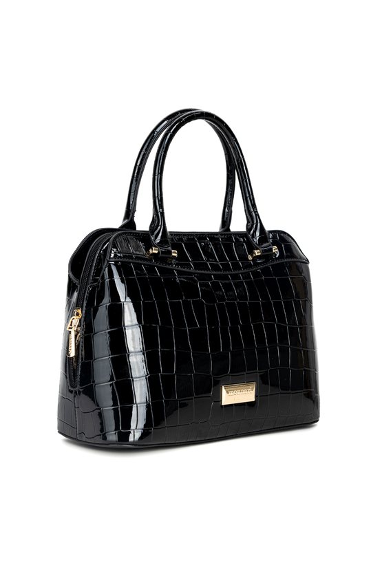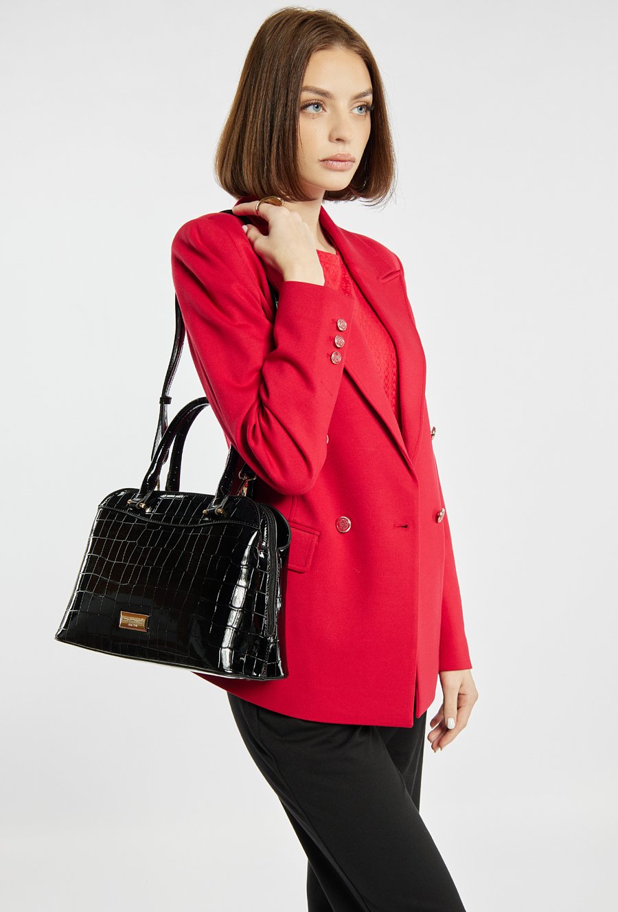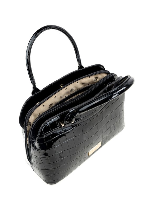 Torba damska z kolekcji Premium o wymiarach 30 × 22 × 12 cm. Torba posiada jedną główną komorę zapinaną na suwak oraz dwie dodatkowe komory zapinane na napy, co ułatwia organizację zawartości. Torba wyróżnia się modnym wzorem i została zawieszona na wygodnych rączkach. W zestawie znajduje się odpinany, regulowany pasek. Torbę należy przechowywać w dołączonym woreczku.