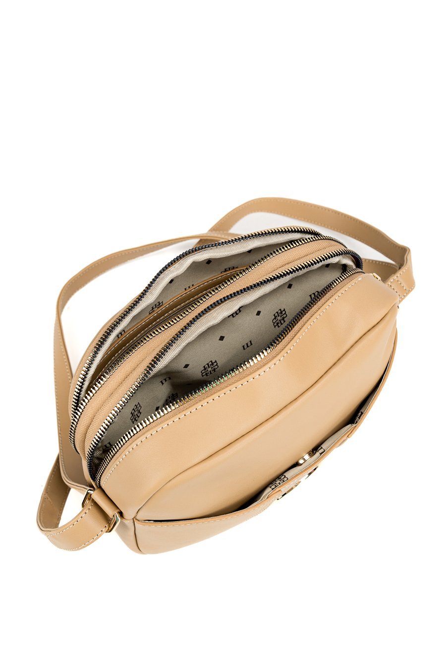 Damska torba typu crossbody o wymiarach 24,5 × 19,5 × 7 cm to stylowe i funkcjonalne rozwiązanie na co dzień. Model dwukomorowy, wykończony jasnymi, subtelnie logowanymi podszewkami, oferuje praktyczne kieszonki wewnętrzne, ułatwiające organizację niezbędnych drobiazgów. Z przodu znajduje się dodatkowa, zapinana kieszeń – idealna na rzeczy, do których chcesz mieć szybki dostęp. Torba zawieszona jest na regulowanym pasku. Należy przechowywać w załączonym woreczku.