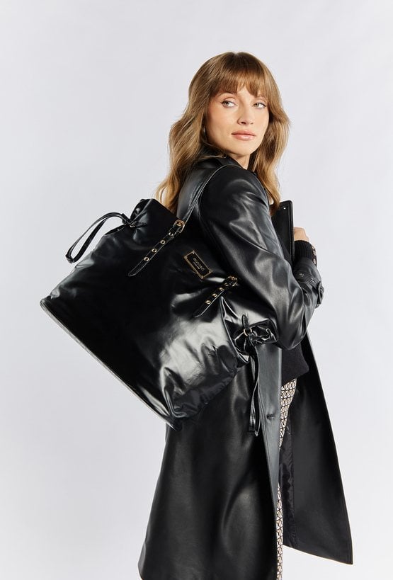 Przestronna torba damska z subtelnym marszczeniem po bokach, które dodaje jej elegancji i unikalnego charakteru. Torba jednokomorowa o jasnej, logowanej podszewce z dodatkowymi kieszonkami na drobiazgi. Model ten zapinany jest od góry na suwak, zawieszony na regulowanych rączkach. Torbę należy przechowywać w załączonym woreczku. Wymiary: 45 cm x 33 cm x 10 cm