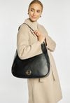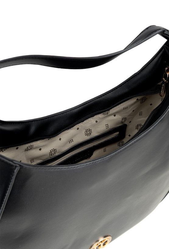 Duża torba damska na pasku. Jednokomorowy model z jasną, logowaną podszewką oraz praktycznymi kieszonkami na drobiazgi. Przód zdobi ozdobna blaszka z logo marki Monnari, która podkreśla elegancki charakter torby. Torbę należy przechowywać w załączonym woreczku. Wymiary: 38 cm x 30,5 cm x 10 cm.