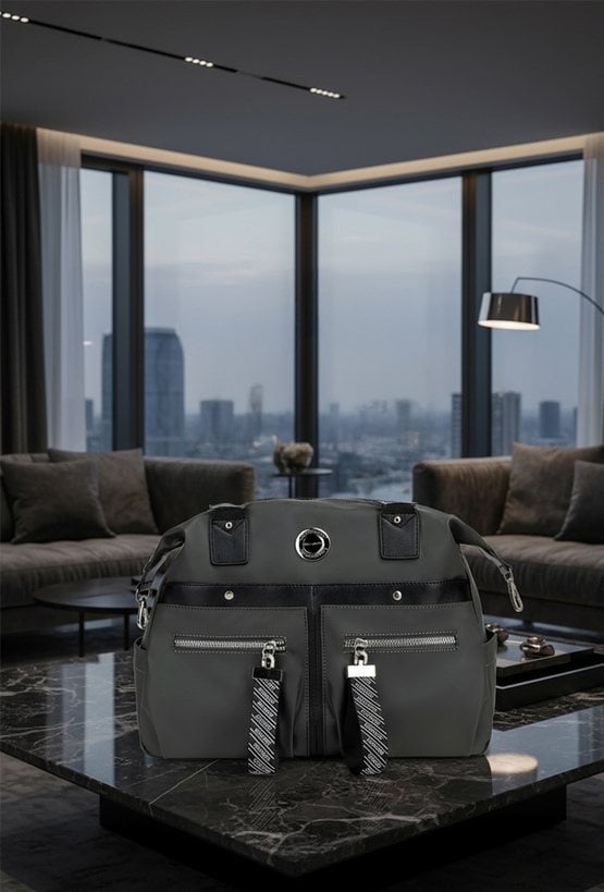 Duża damska torba na co dzień o wymiarach 36 × 25 × 11 cm to idealne połączenie przestronności i stylu. Jednokomorowe wnętrze wykończone zostało jasną, logowaną podszewką oraz uzupełnione o dodatkowe kieszonki, które świetnie sprawdzą się na drobiazgi. Model wyposażono w rączki do noszenia w dłoni oraz dodatkowy, regulowany pasek. Zewnętrzna część torby została zaprojektowana z myślą o maksymalnej funkcjonalności- z przodu znajdują się cztery kieszenie: dwie zapinane na suwak i dwie dyskretnie ukryte, bez zapięcia. Dodatkowa kieszeń z tyłu, również zapinana, oraz pojedyncze kieszenie boczne pozwalają na uporządkowane przechowywanie rzeczy. Torbę należy przechowywać w załączonym woreczku.