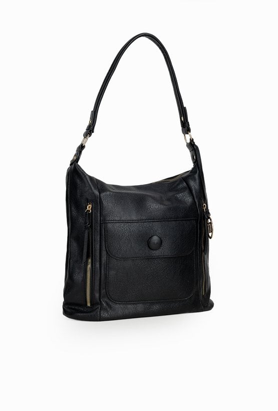 Torba damska typu worek z kieszonką z klapą to praktyczny i stylowy wybór na co dzień. Torba jest jednokomorowa, ma jasną, logowaną podszewkę oraz dodatkowe kieszonki na drobiazgi, które ułatwiają organizację. Torba zawieszona na rączce, przy której umieszczona jest zawieszka z logo marki Monnari, wyróżnia się eleganckim wykończeniem i wygodą użytkowania. Torbę należy przechowywać w dołączonym woreczku. Wymiary: 37 cm x 30,5 cm x 9 cm.