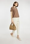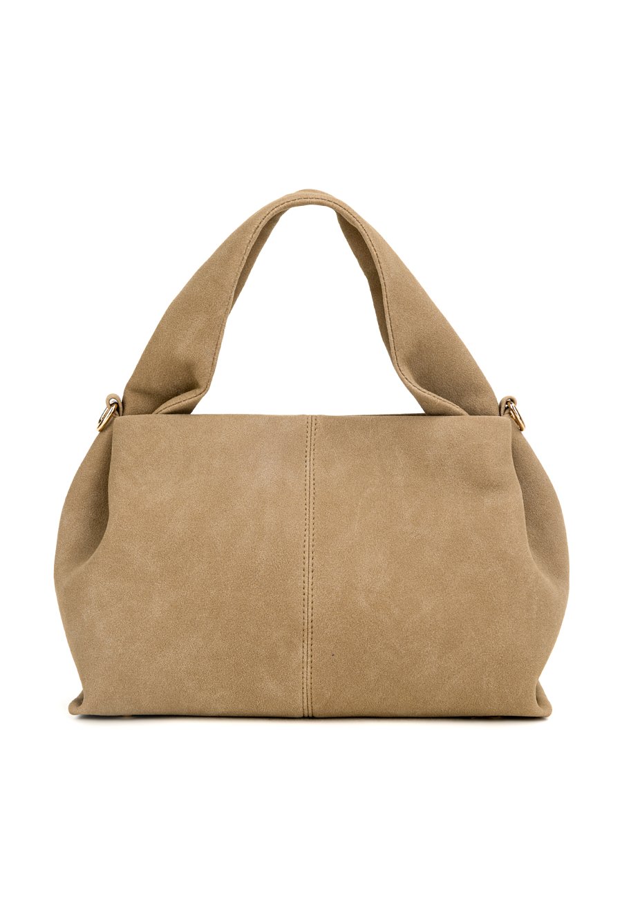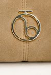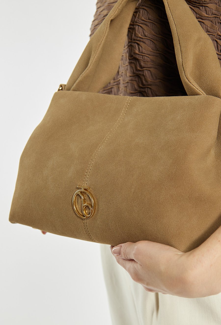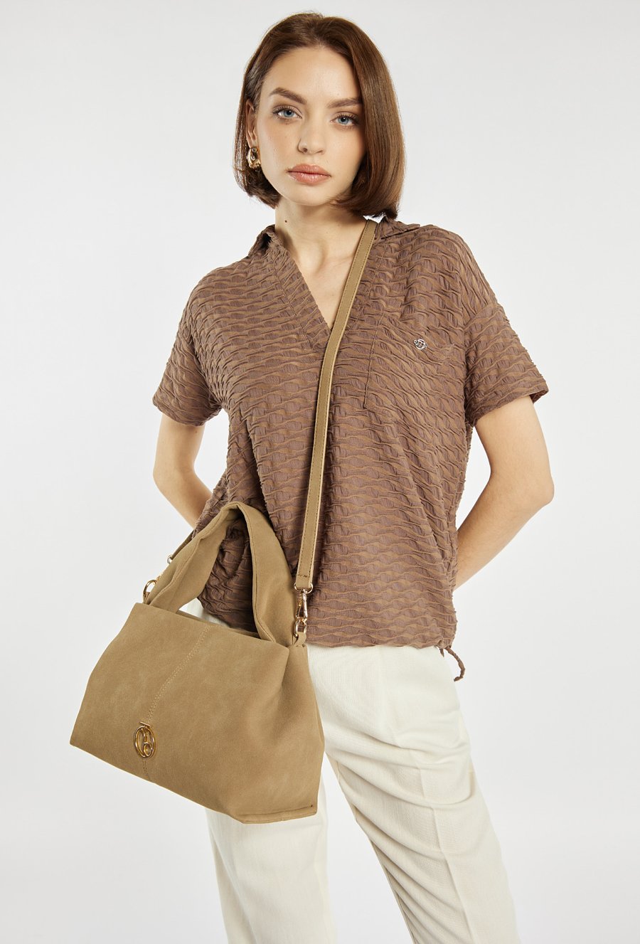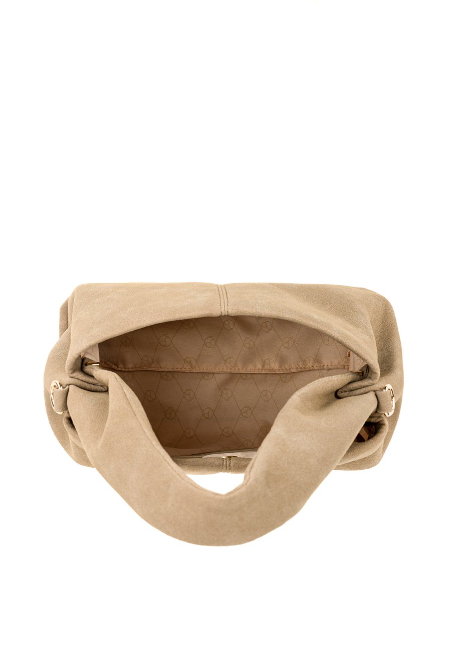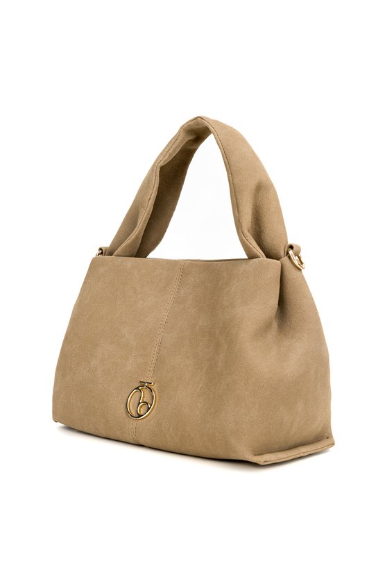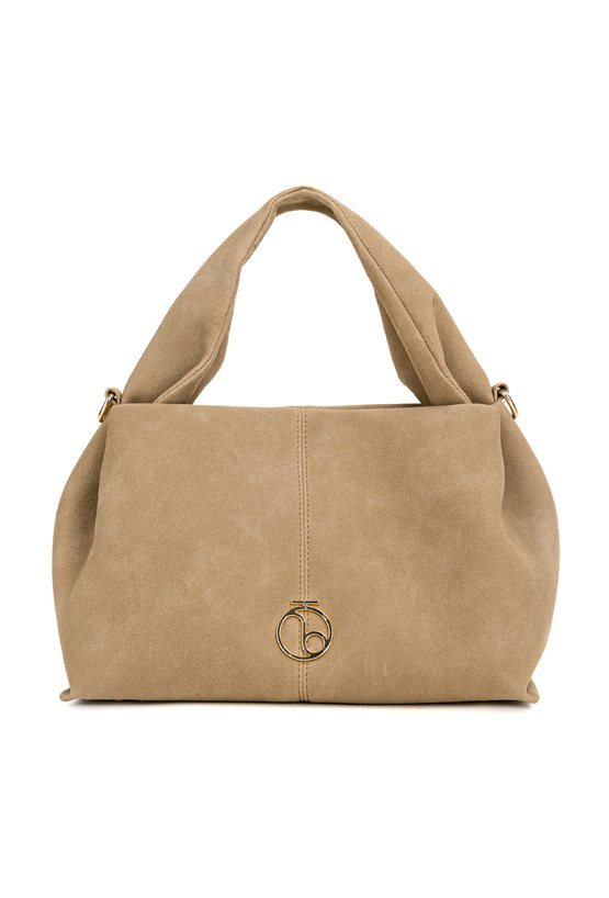 Mała torba o wymiarach 30 × 19 × 15 cm. Jednokomorowe wnętrze z jasną, logowaną podszewką oraz dodatkowymi kieszonkami na drobiazgi, zapinane na napę. Torba zawieszona na ciekawej rączce, a w zestawie znajduje się regulowany pasek. Torbę należy przechowywać w dołączonym woreczku.