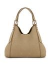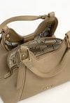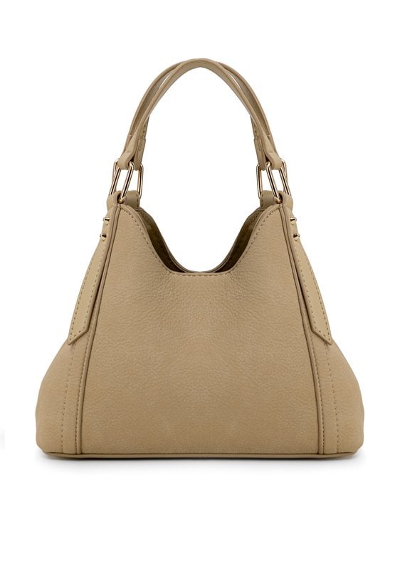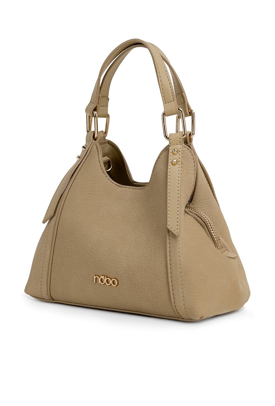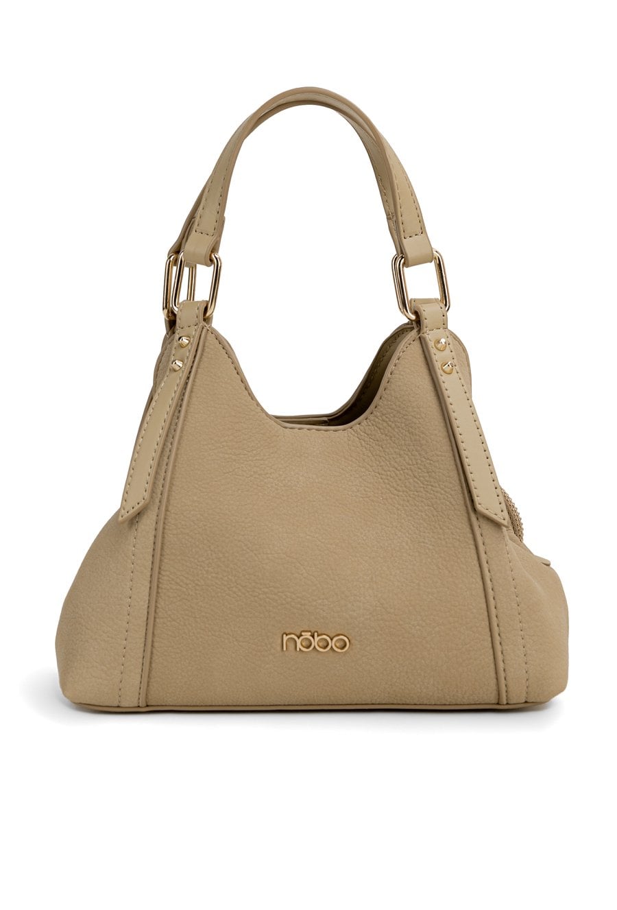 Mała torebka damska o wymiarach 23 × 14 × 10 cm. Model trzykomorowy z jasnymi, logowanymi podszewkami oraz dodatkowymi kieszonkami. Jedna komora zapinana na suwak, dwie pozostałe na napę. Torebka zawieszona na rączkach, w zestawie regulowany pasek. Torbę należy przechowywać w dołączonym woreczku.