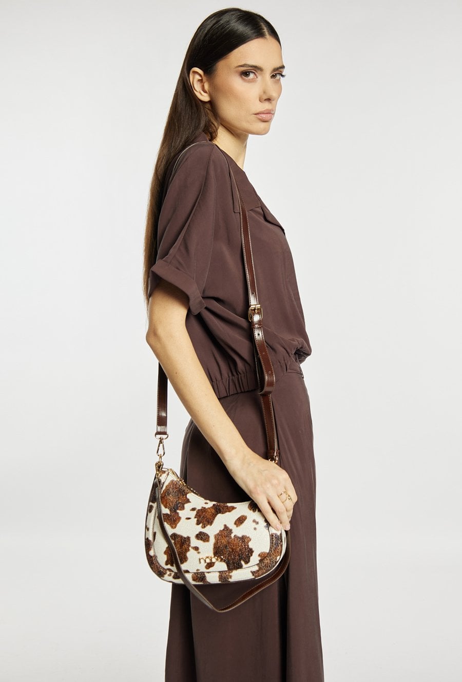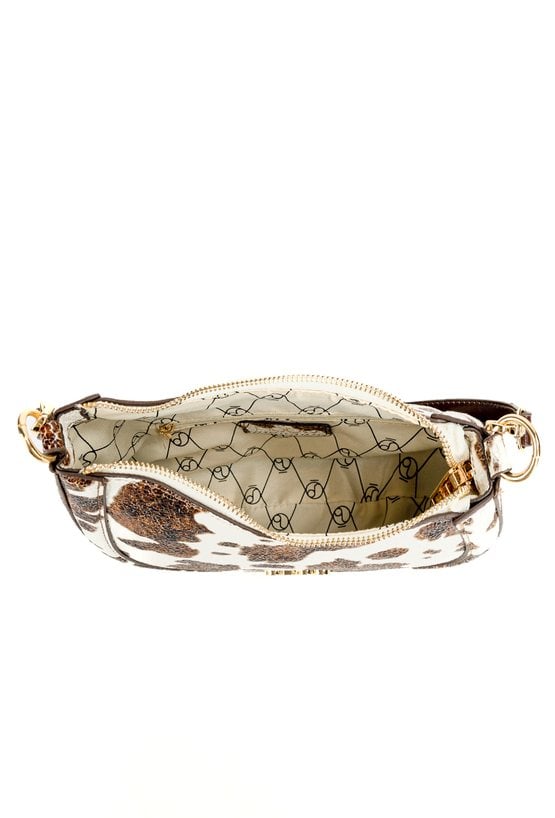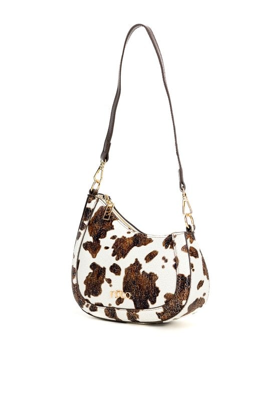 Mała torebka damska z modnym wzorem to stylowy dodatek na co dzień i na wyjścia. Torba jest jednokomorowa, ma jasną, logowaną podszewkę oraz dodatkowe kieszonki na drobiazgi, które ułatwiają organizację. Torba w zestawie ma dwa odpinane paski: krótszy, który tworzy poręczną rączkę, oraz dłuższy, idealny do noszenia na ramieniu. Torbę należy przechowywać w dołączonym woreczku. Wymiary: 24,5 cm x 15 cm x 5 cm.