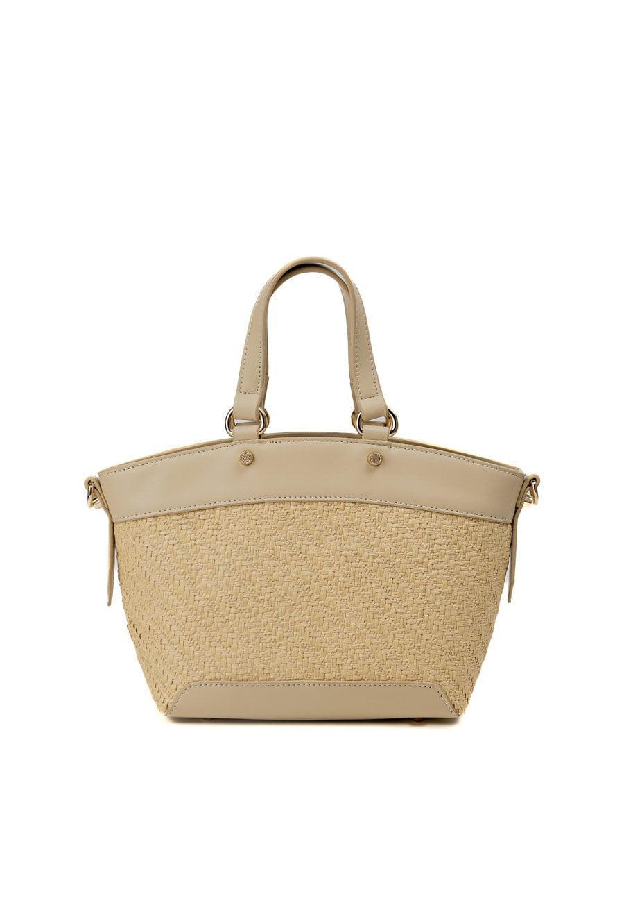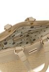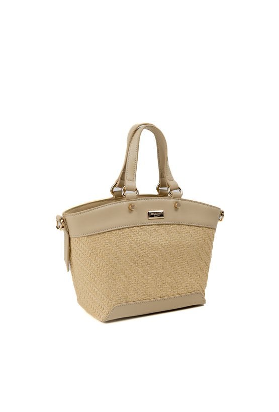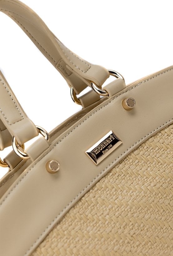 Torba damska z efektowną, plecioną fakturą, która dodaje jej wyjątkowego charakteru. Torba jednokomorowa, z jasną, logowaną podszewką oraz dodatkowymi kieszonkami na drobiazgi. Zawieszona na wygodnych, krótkich rączkach, a w zestawie znajduje się regulowany pasek. Torbę należy przechowywać w załączonym woreczku. Wymiary: 30 cm x 20,5 cm x 10 cm.