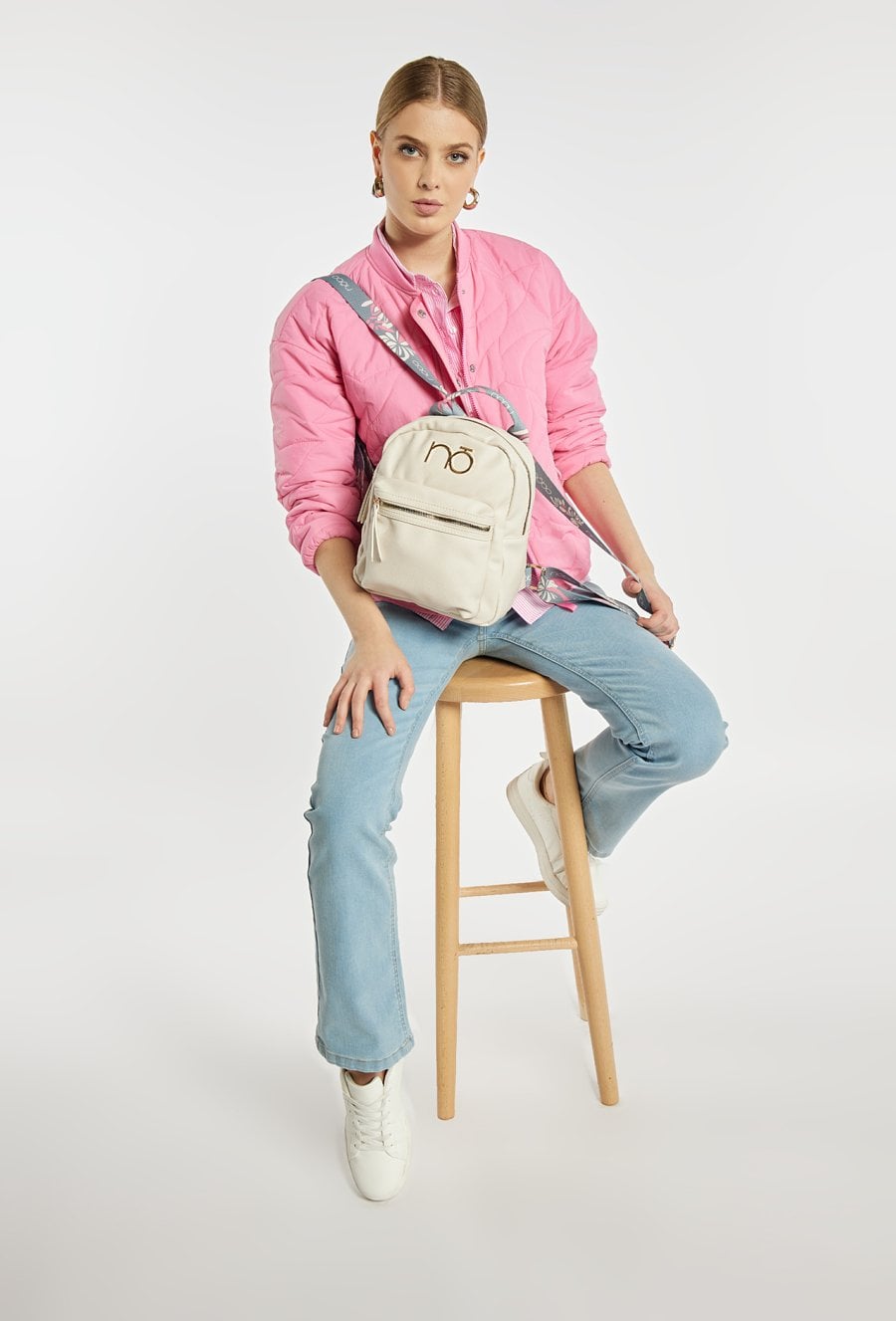 Mały plecak damski o wymiarach: 22 cm x 26 cm x 10 cm. Plecak jednokomorowy model wykończony jasną, logowaną podszewką, która dodaje wnętrzu elegancji. W środku znajdują się funkcjonalne kieszonki, które ułatwiają organizację drobiazgów. Uniwersalny design sprawia, że plecak świetnie sprawdzi się zarówno w miejskich stylizacjach, jak i podczas swobodnych, codziennych aktywności. Należy przechowywać w dołączonym woreczku.