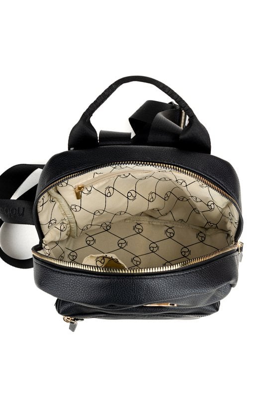 Mały plecak damski o wymiarach: 22 cm x 26 cm x 10 cm. Plecak jednokomorowy model wykończony jasną, logowaną podszewką, która dodaje wnętrzu elegancji. W środku znajdują się funkcjonalne kieszonki, które ułatwiają organizację drobiazgów. Uniwersalny design sprawia, że plecak świetnie sprawdzi się zarówno w miejskich stylizacjach, jak i podczas swobodnych, codziennych aktywności. Należy przechowywać w dołączonym woreczku.