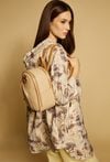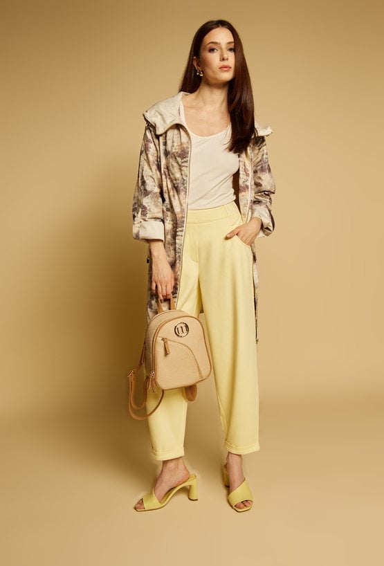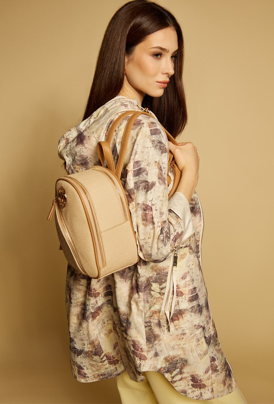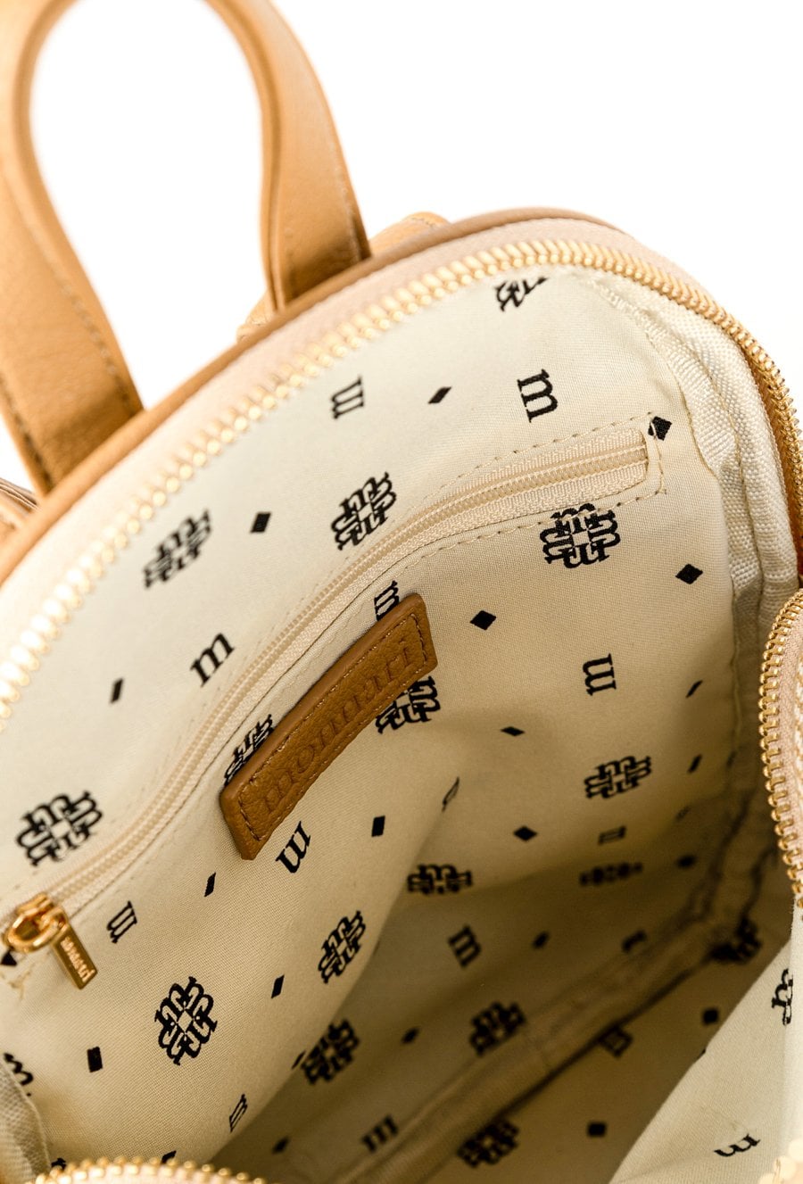 Mały plecak damski, idealny na co dzień. Model jednokomorowy, z jasną, logowaną podszewką oraz dodatkowymi kieszonkami na drobiazgi, które ułatwiają utrzymanie porządku. Plecak wyposażony w rączkę do noszenia w dłoni oraz regulowane paski, zapewniające wygodę i dopasowanie do sylwetki. Wymiary: 21 cm x 25 cm x 11 cm. Torbę należy przechowywać w dołączonym woreczku.