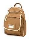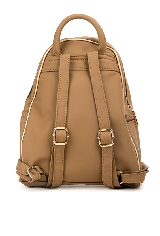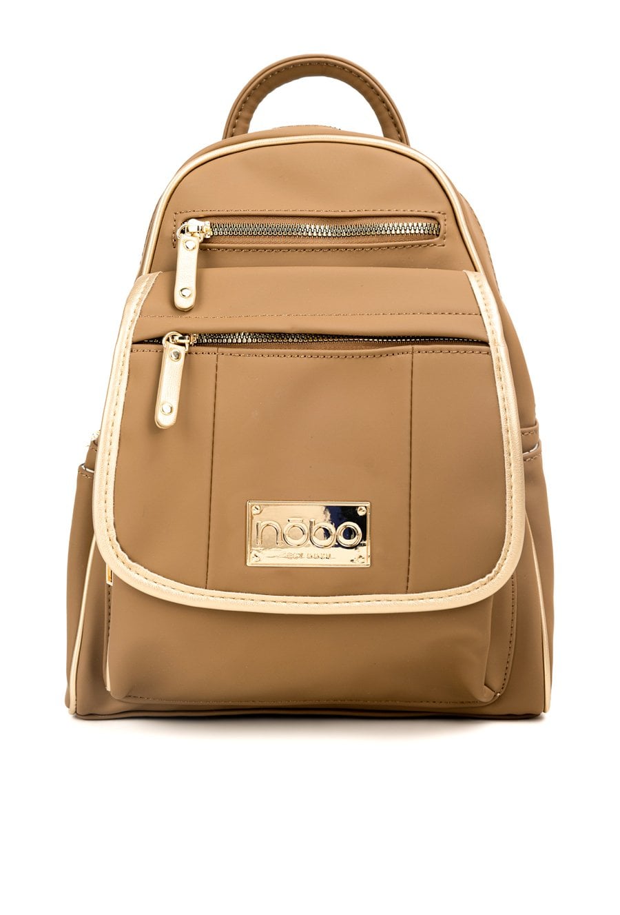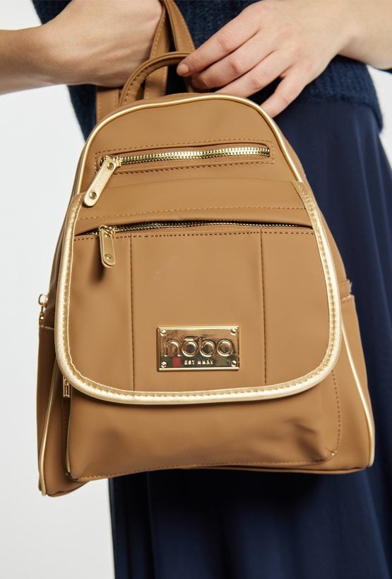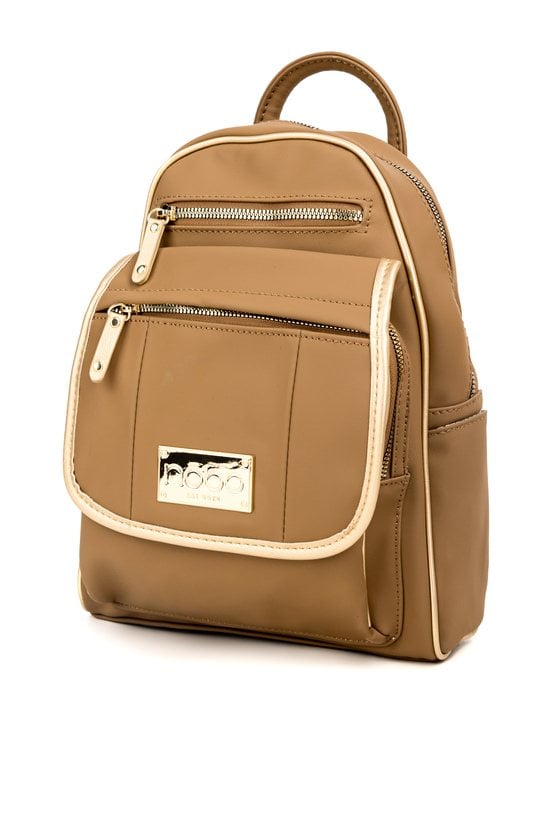Mały plecak damski o wymiarach 22 × 30 × 10 cm. Jednokomorowy model z jasną, logowaną podszewką oraz dodatkowymi kieszonkami na drobiazgi. Atutem plecaka jest przednia kieszonka zapinana na suwak oraz ozdobna napa z logo marki NOBO. Idealny na co dzień. Należy przechowywać w załączonym woreczku.