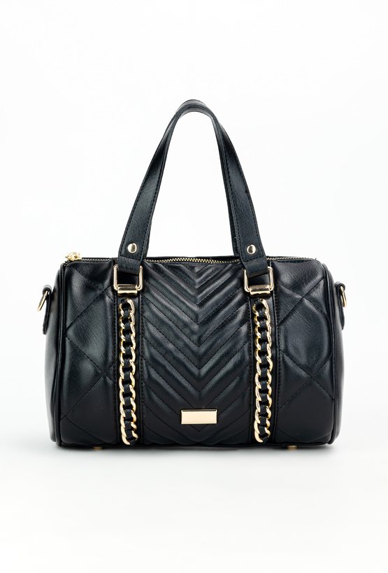 Damska torba z efektownym pikowaniem, ozdobiona dekoracyjnymi paskami z przodu. Torba jednokomorowa o jasnym, logowanym wnętrzu, zapinana od góry na suwak. Torba zawieszona na rączkach, a dołączony regulowany pasek pozwala nosić ją w dowolny sposób. Torbę należy przechowywać w załączonym woreczku. Wymiary: 24 cm x 20 cm x 15 cm
