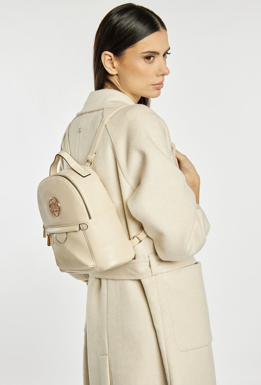 Plecak damski o wymiarach 20 × 23 × 12 cm to praktyczny i stylowy model na co dzień. Plecak jest jednokomorowy, ma jasną, logowaną podszewkę oraz dodatkowe kieszonki, a z przodu wyróżnia się logo marki Monnari. Plecak wyposażono w krótką rączkę oraz regulowane paski. Torbę należy przechowywać w dołączonym woreczku.