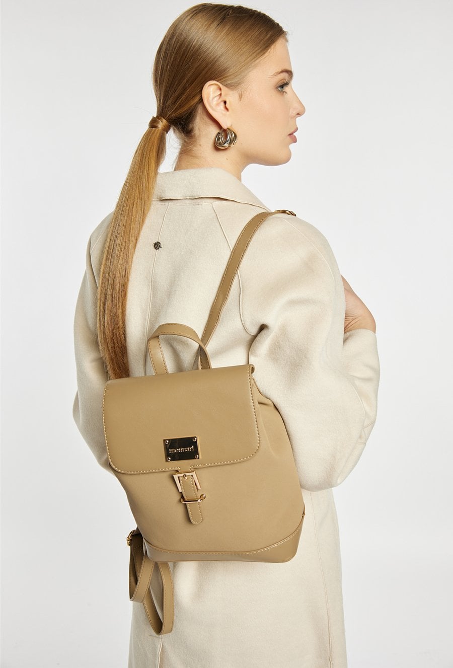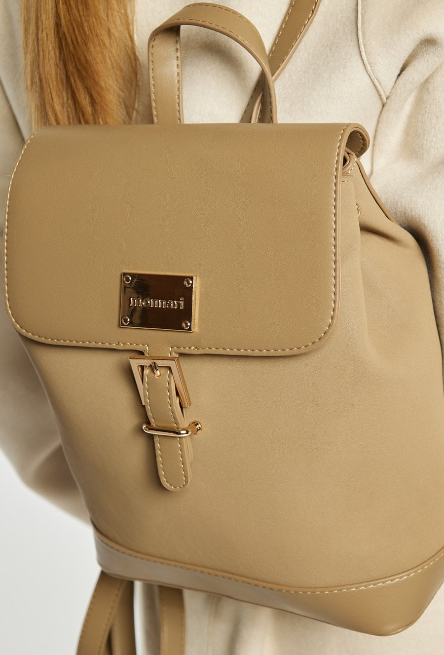 Plecak damski z kolekcji Premium. Model jednokomorowy, z jasną, logowaną podszewką oraz dodatkowymi kieszonkami na drobiazgi. Plecak zapinany na klapę z napą. Zawieszony na wygodnej rączce oraz regulowanych paskach, zapewniających komfort noszenia. Należy przechowywać w dołączonym woreczku. Wymiary: 26 cm x 28 cm x 9 cm.
